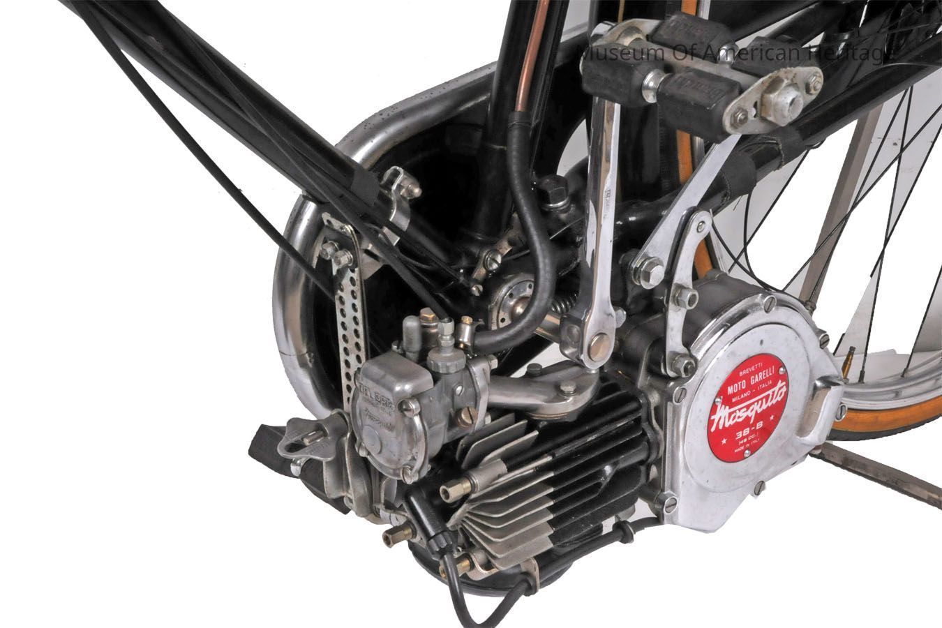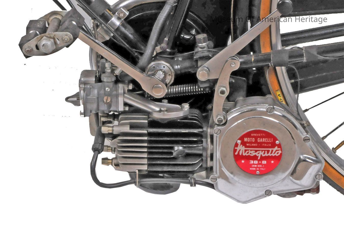 Motor: gasoline, Moto Garelli Mosquito 36-B, gas tank on rear bike rack.
