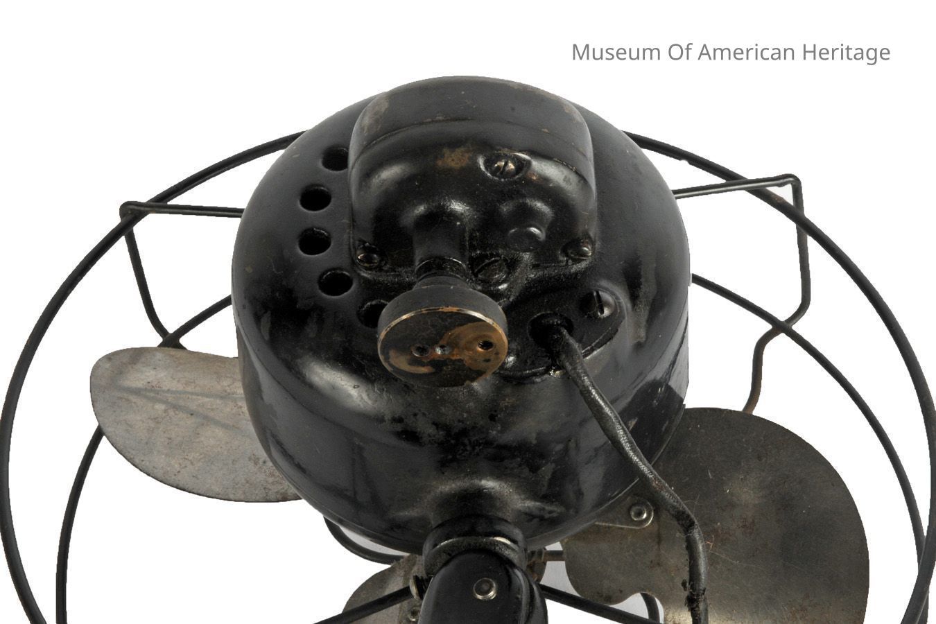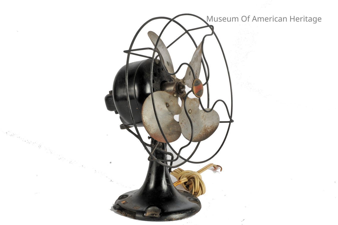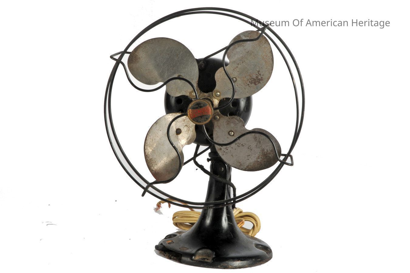 Modern AC cord added, 4 blades, single S cage, on/off switch in edge of base.