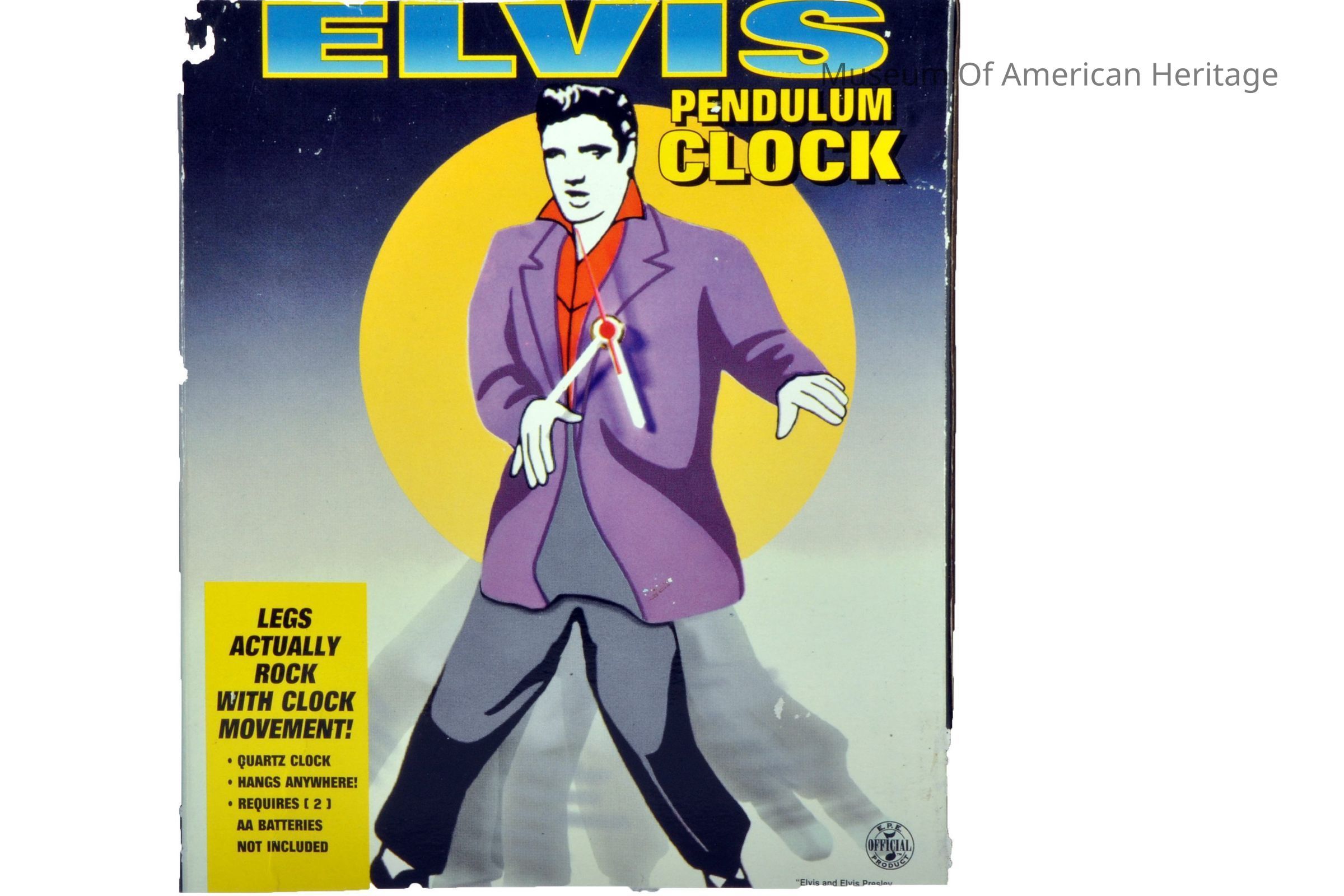Quartz movement, 2 AA batteries required, E.R.E. Official product, SO3-A, Plastic, legs are pendulum, in original box.