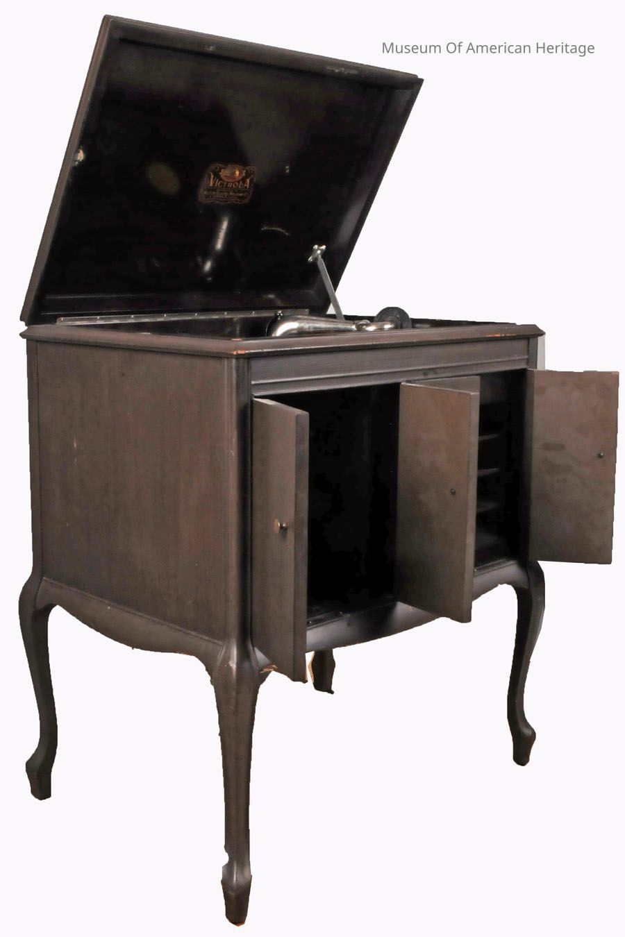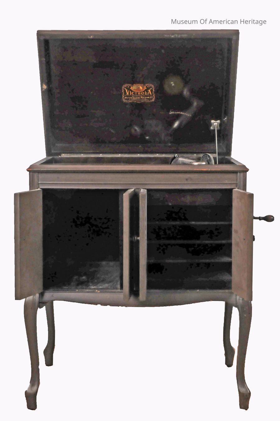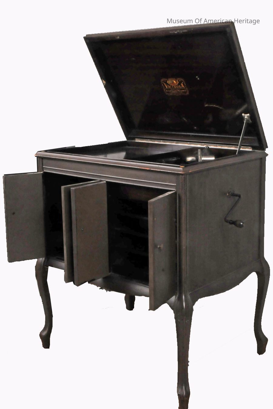 Floor standing crank phonograph.