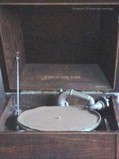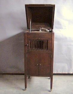78 rpm, console, spring-wound motor, record storage space below, some records included.