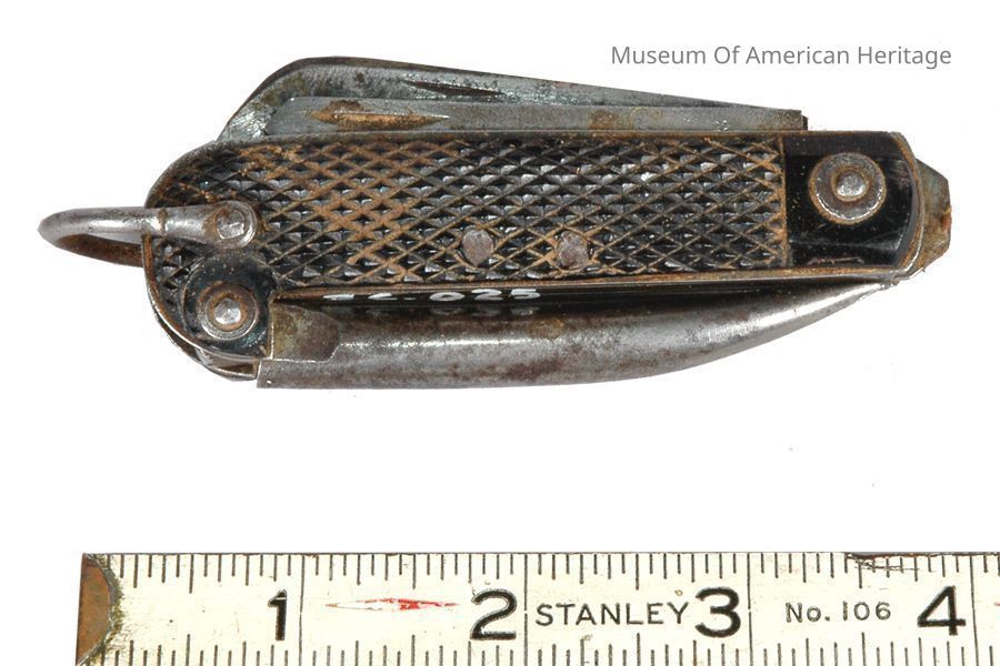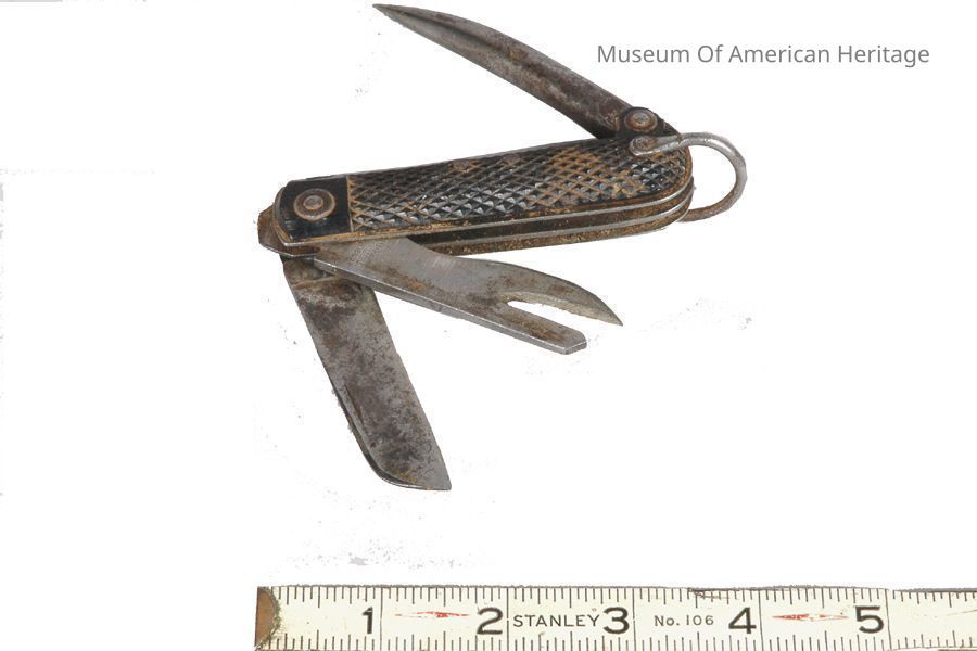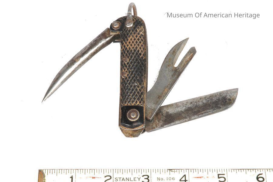 Fid(?), knife blade, can opener, possibly for sailor.