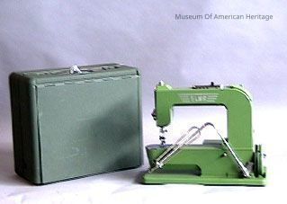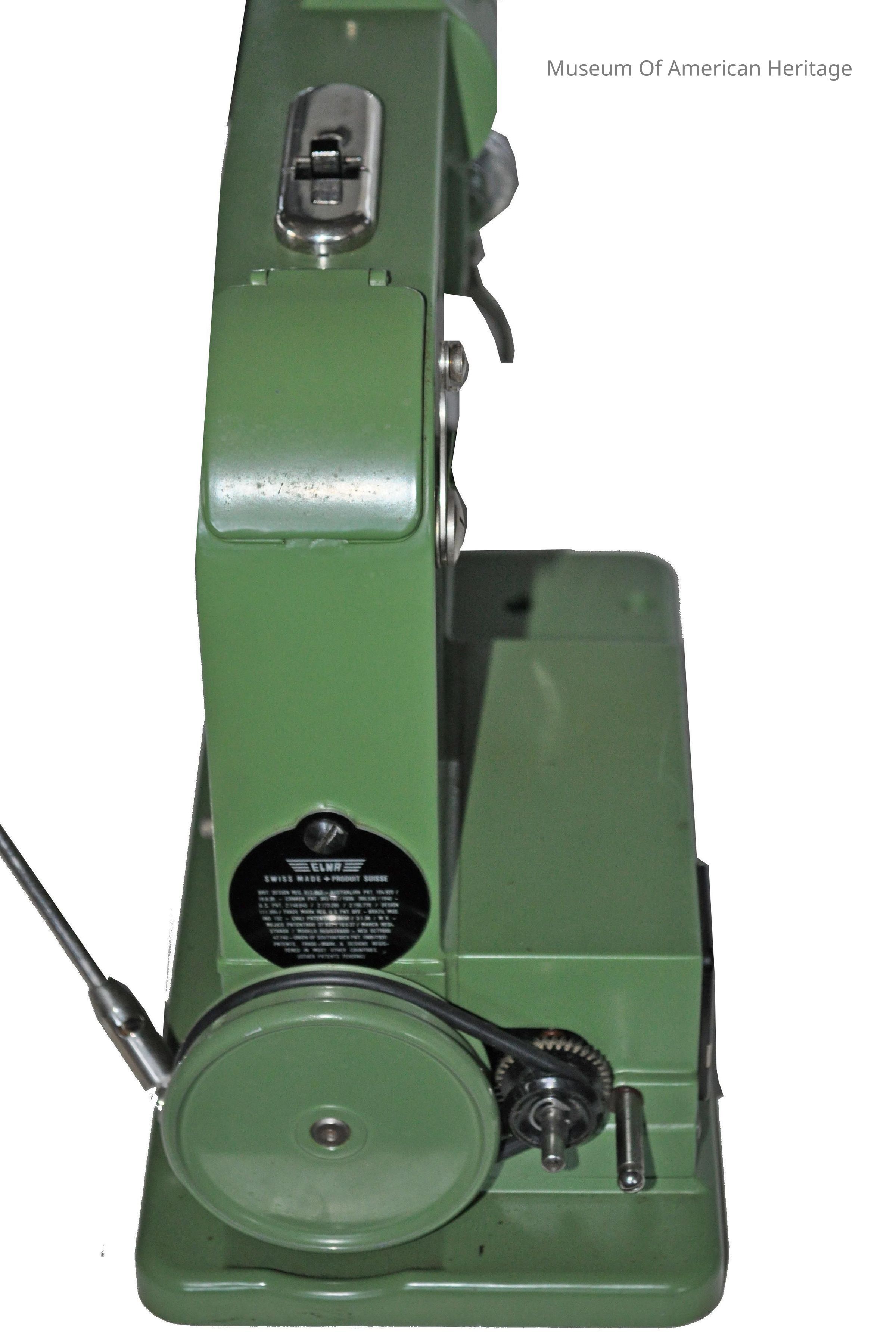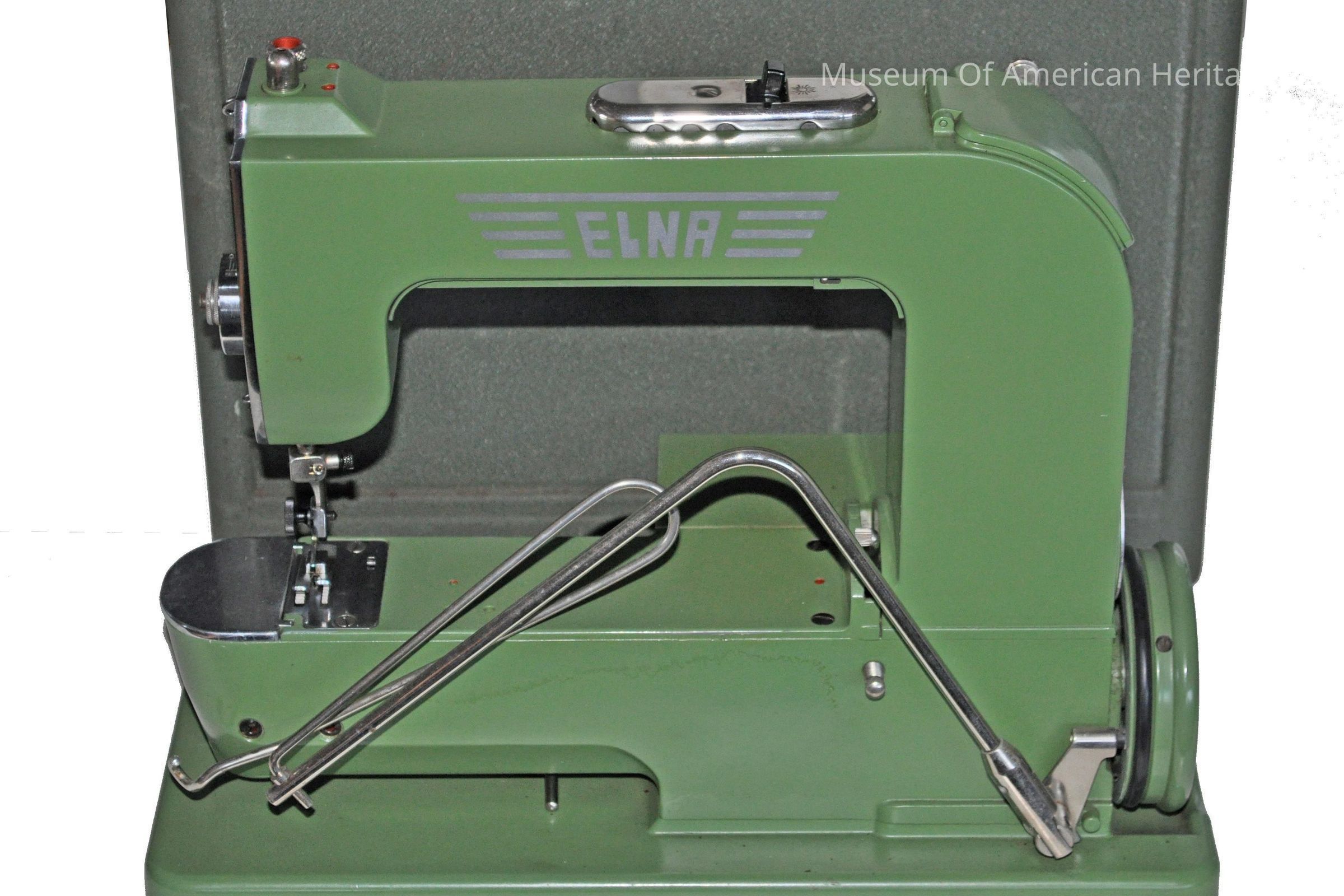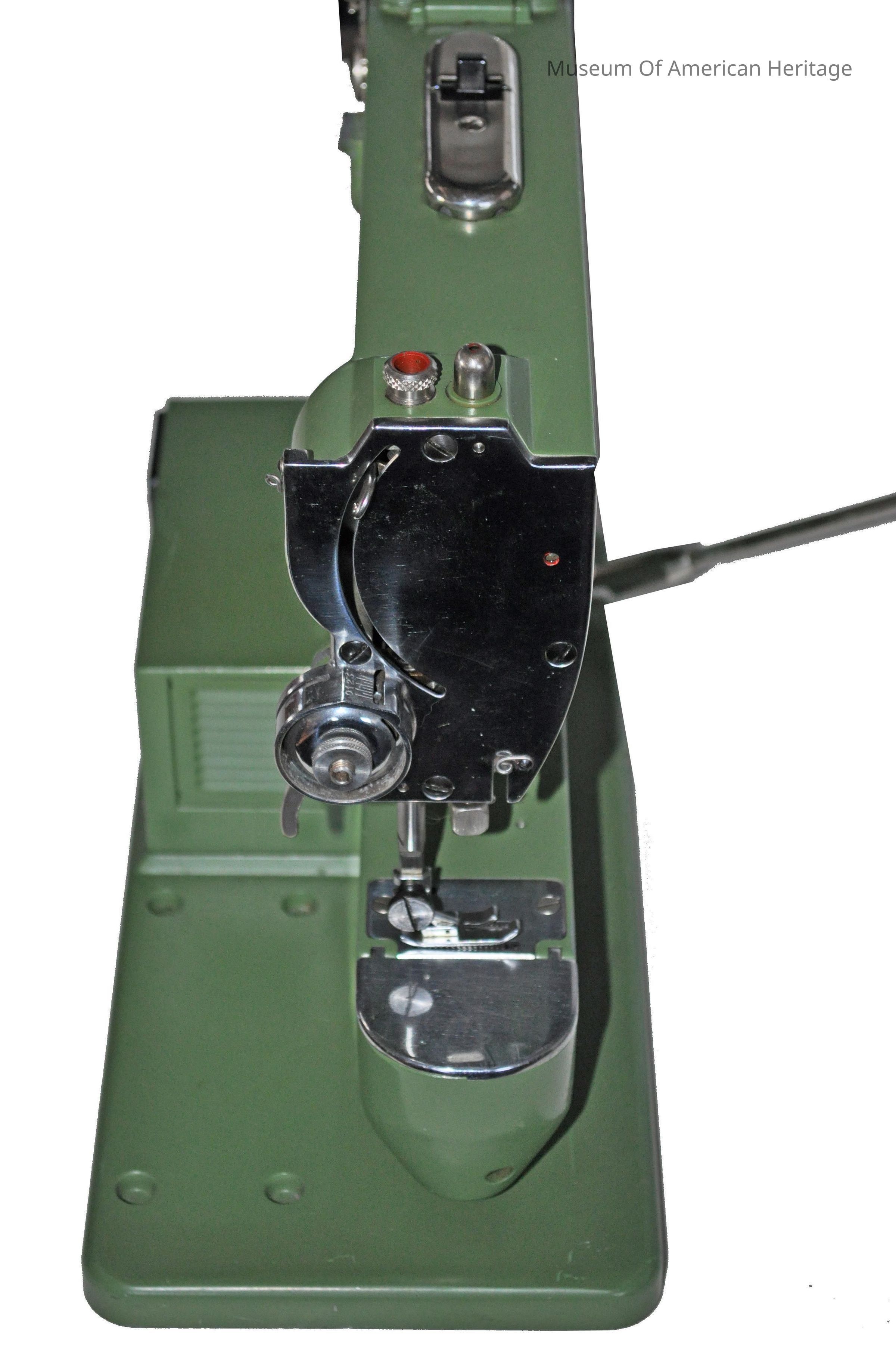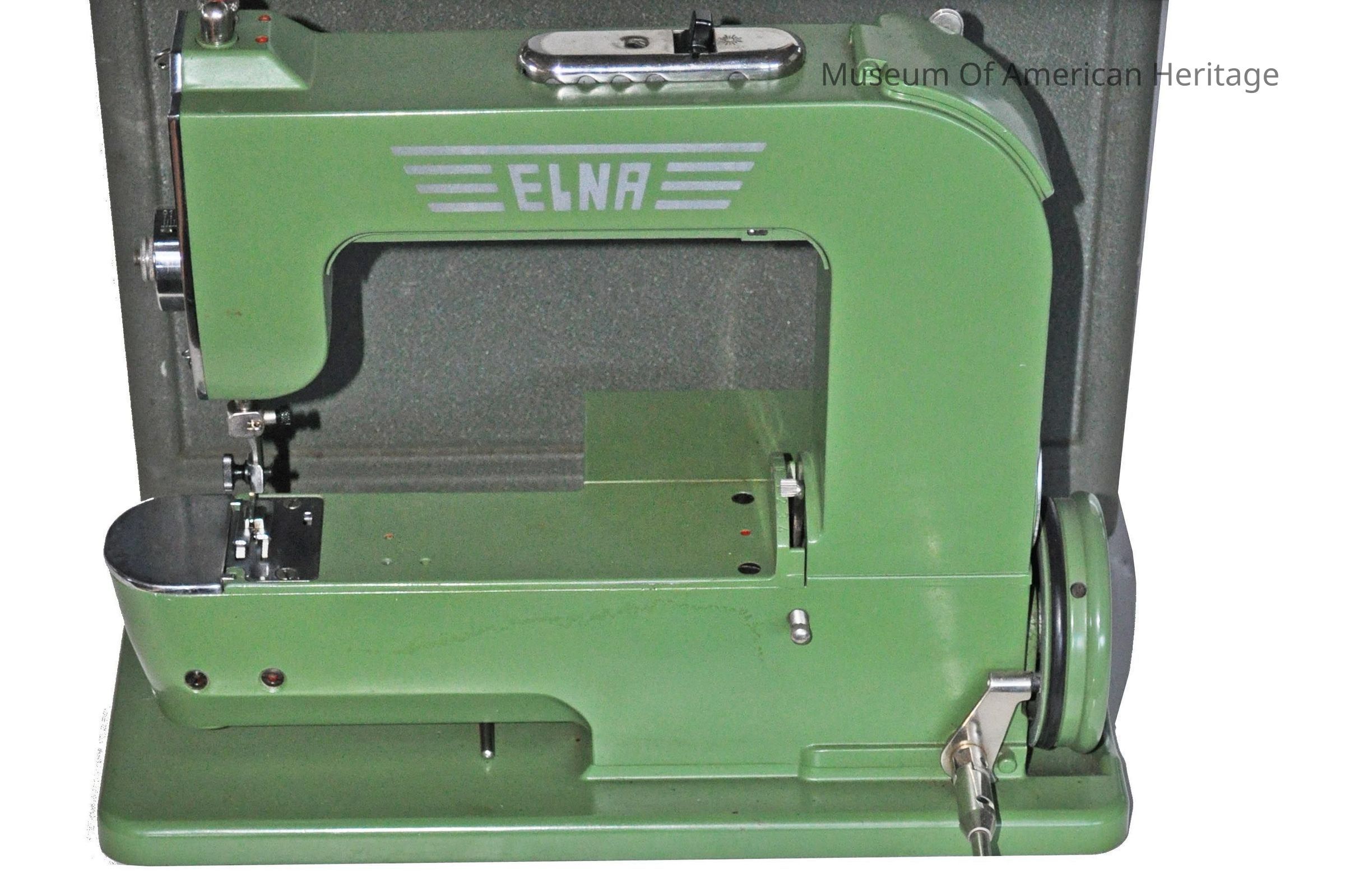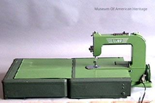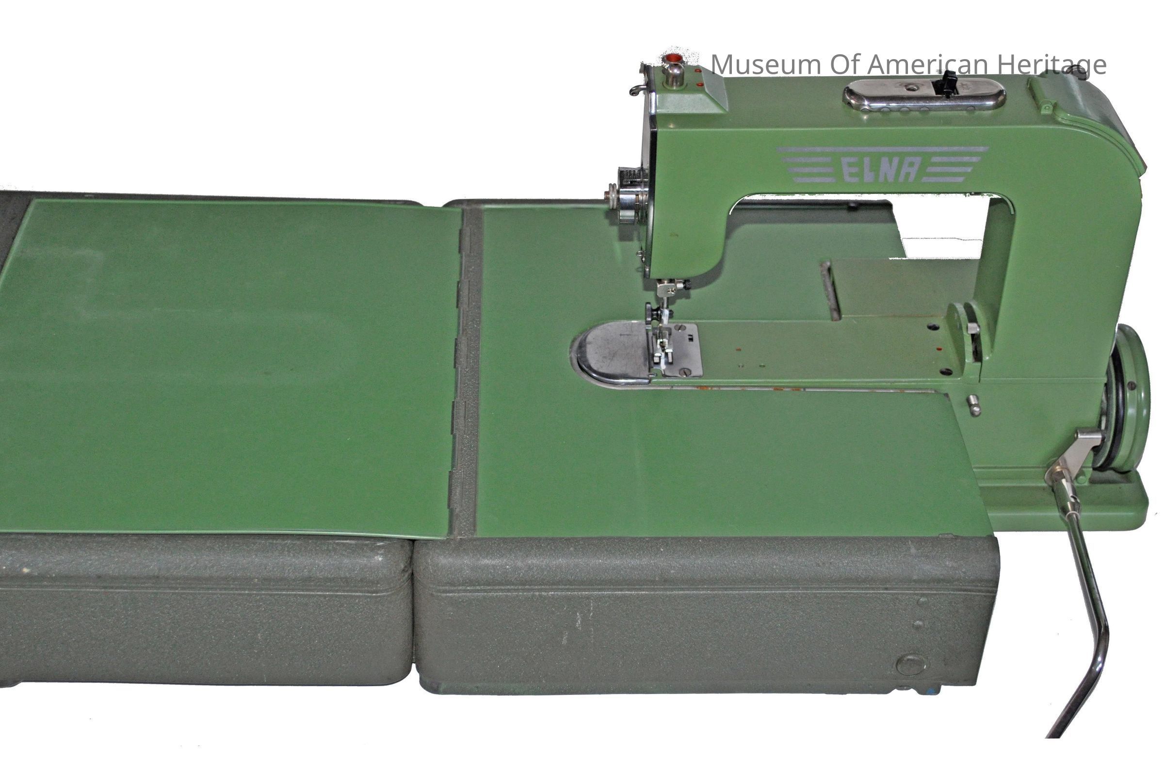 Rotary, electric, knee control, free arm, case becomes sewing table.