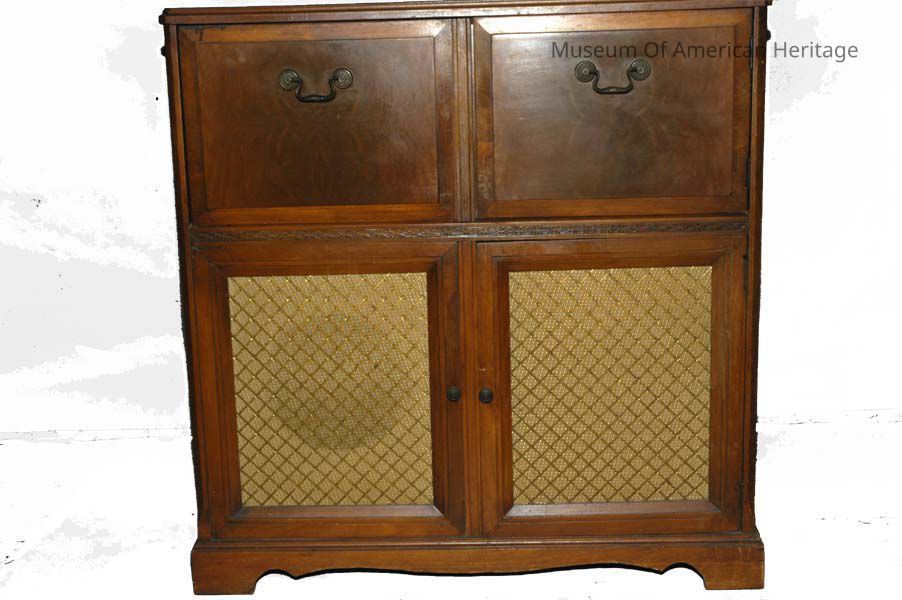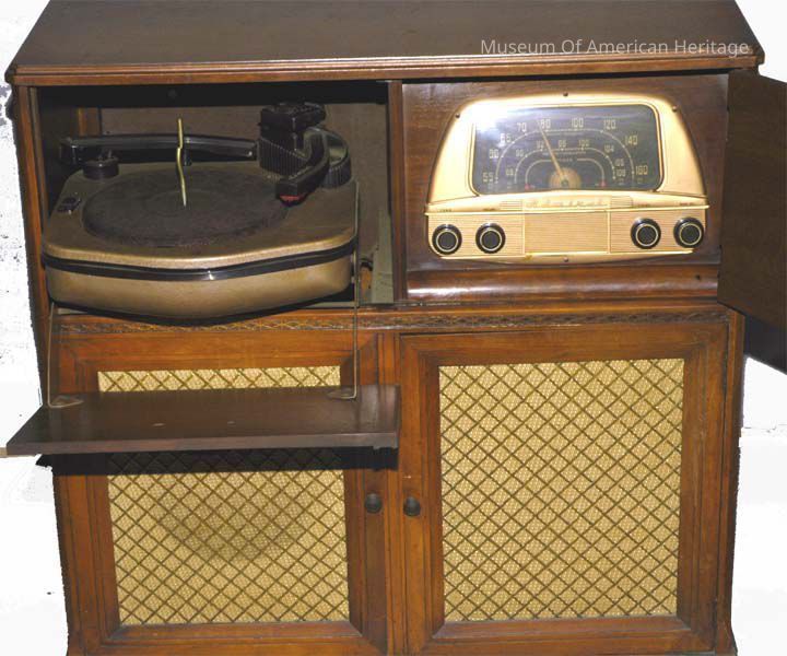 Console with doors, record changer 2-speed-78-33, 2 arms on record player, no on line photos of another with 2 phonograph arms, possibly one arm for 33 rpm the other for 78 rpm. Neither arm is heavy for record cutting.