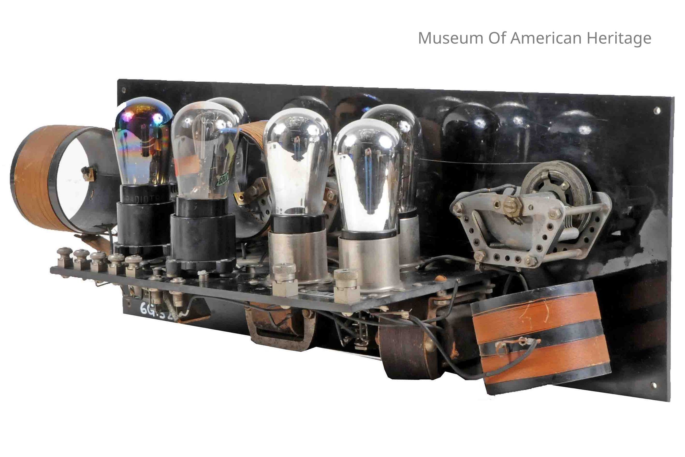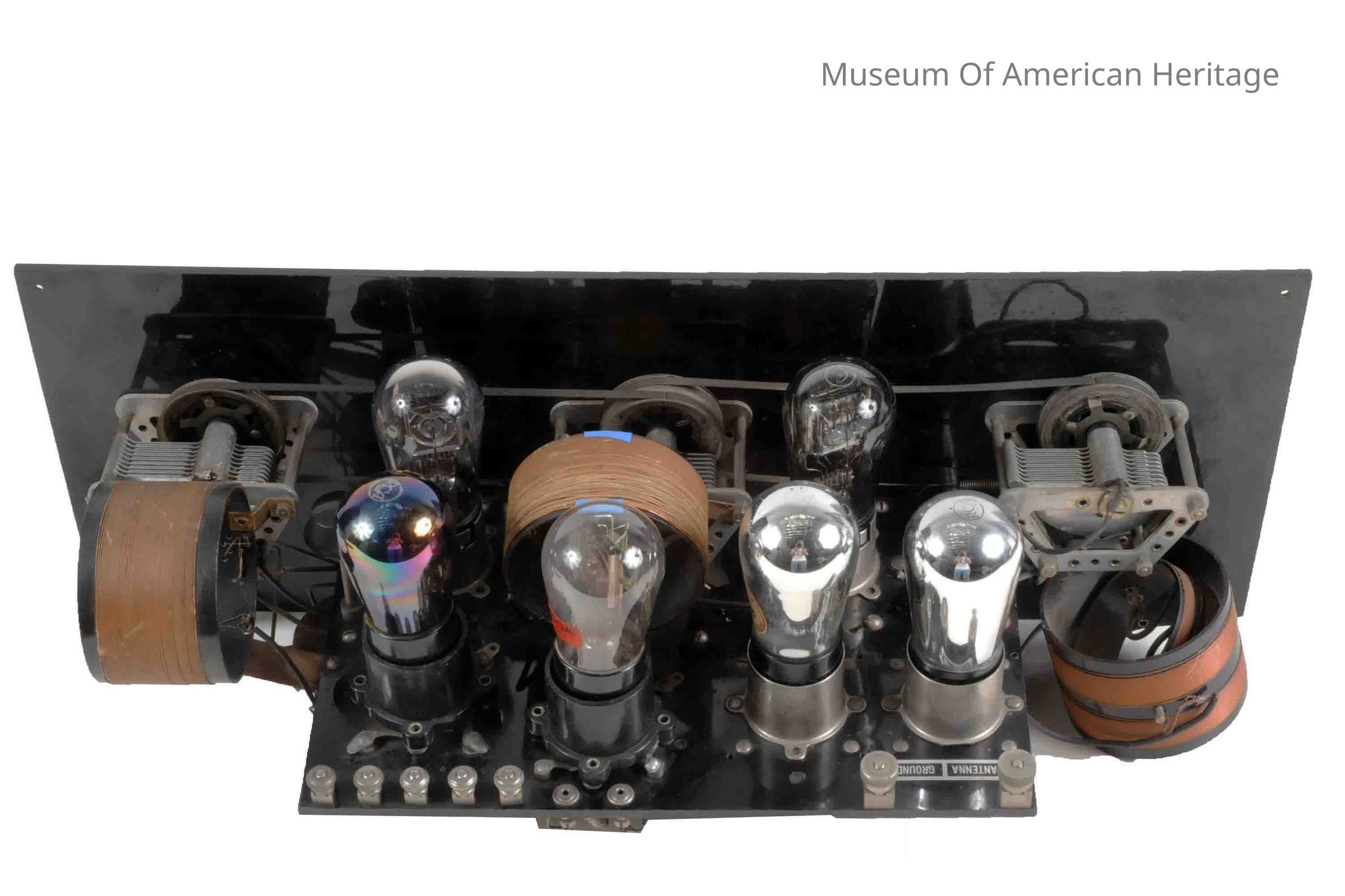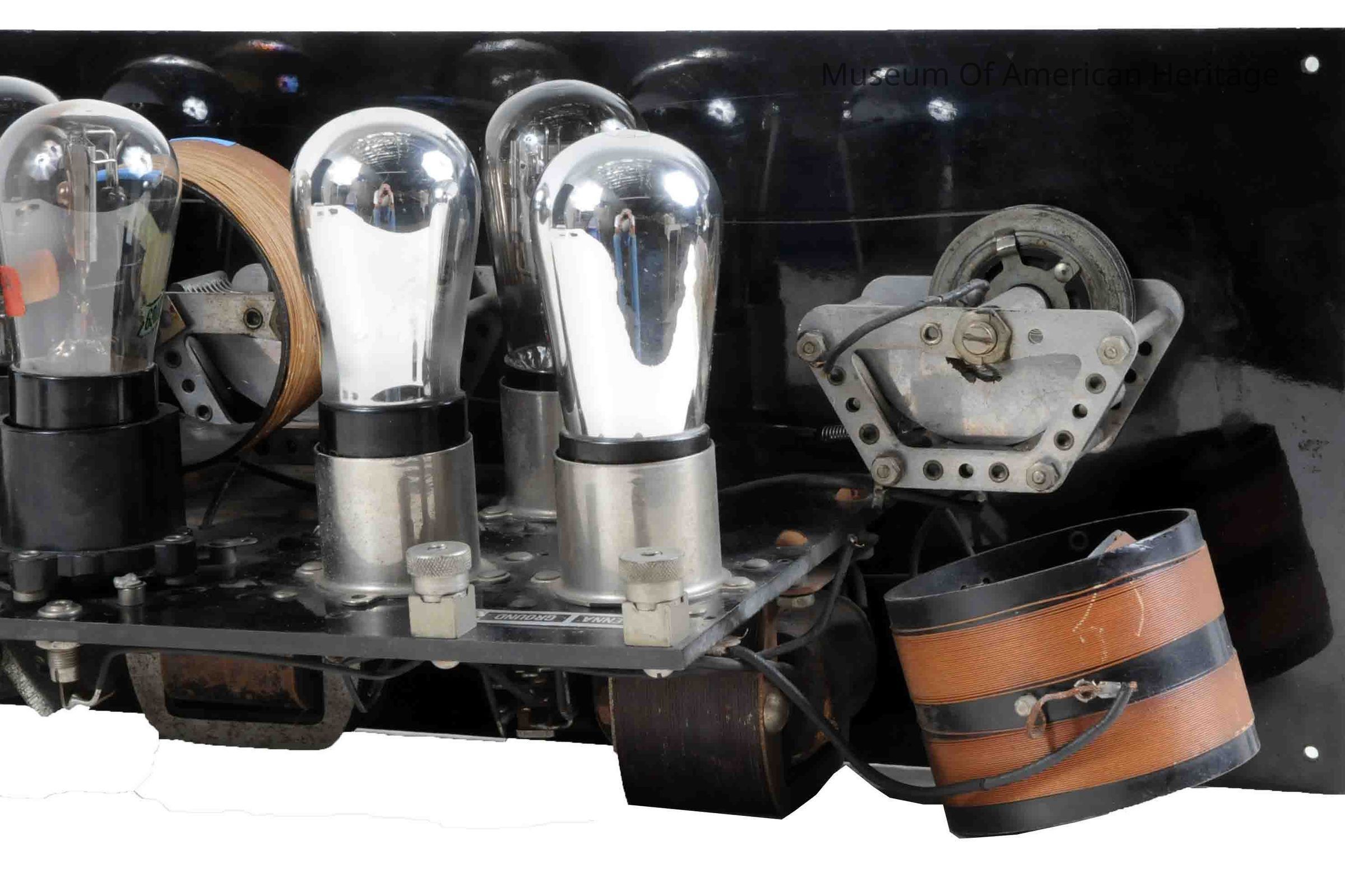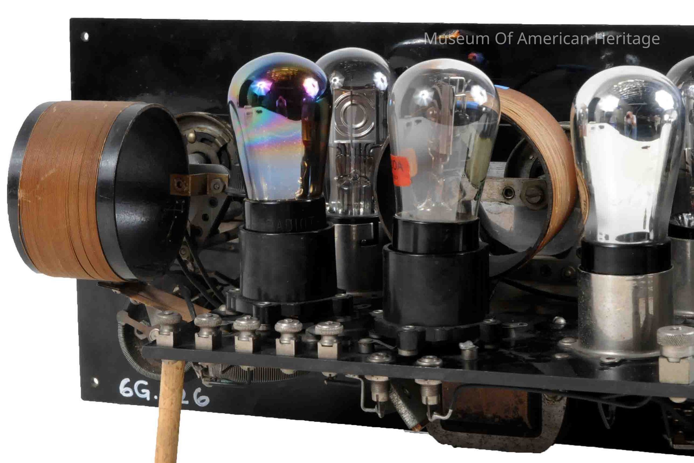 6 vacuum tubes, plastic bezel, no speaker attached, includes speaker dial, 7 knobs.