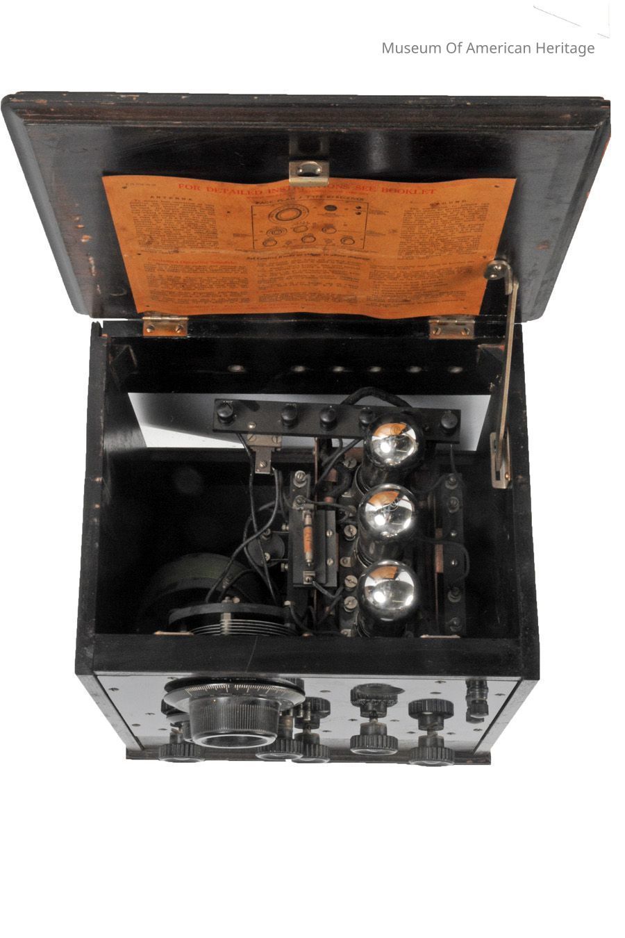 Has original instructions under the lid. Three tubes. Broadcast band AM only.