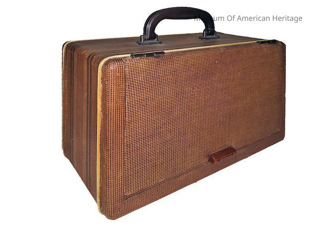 Suitcase design with hinged cover.