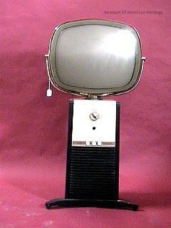 The Philco Predicta was marketed as the “television of the future” when it was released in 1958 and was the first swivel-screen television. The tubes on this model were thinner than any on the market. The safety mask that separated the picture tube from the glass also featured a new plastic called “tenite,” which is made from soft wood. This plastic produced a greenish tint, adding to the unusual appearance of the model.