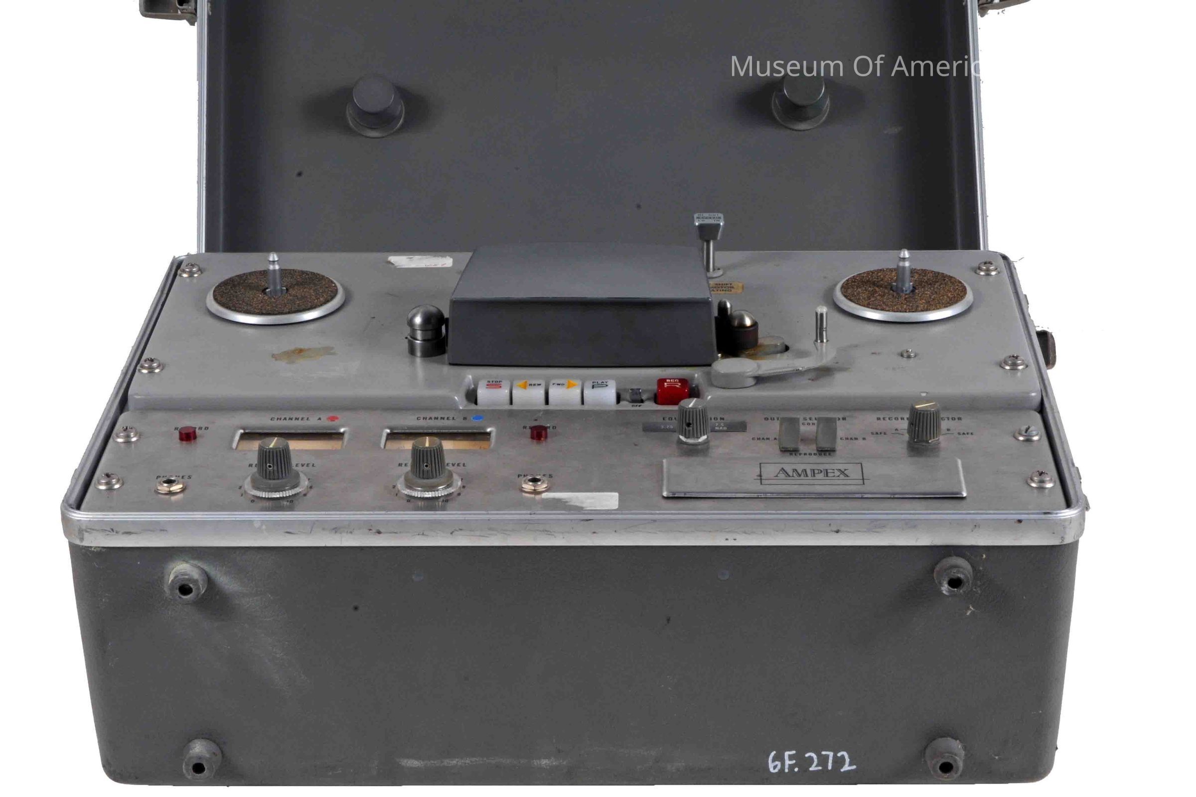 Portable tape recorder, reel to reel, 117v ac, 1.6 amp, 60 Cycles, catalog no. 01-96000-03.