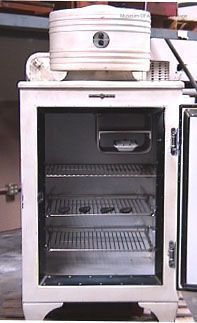 Top coil, electric, shelves, feet covers to protect linoleum.