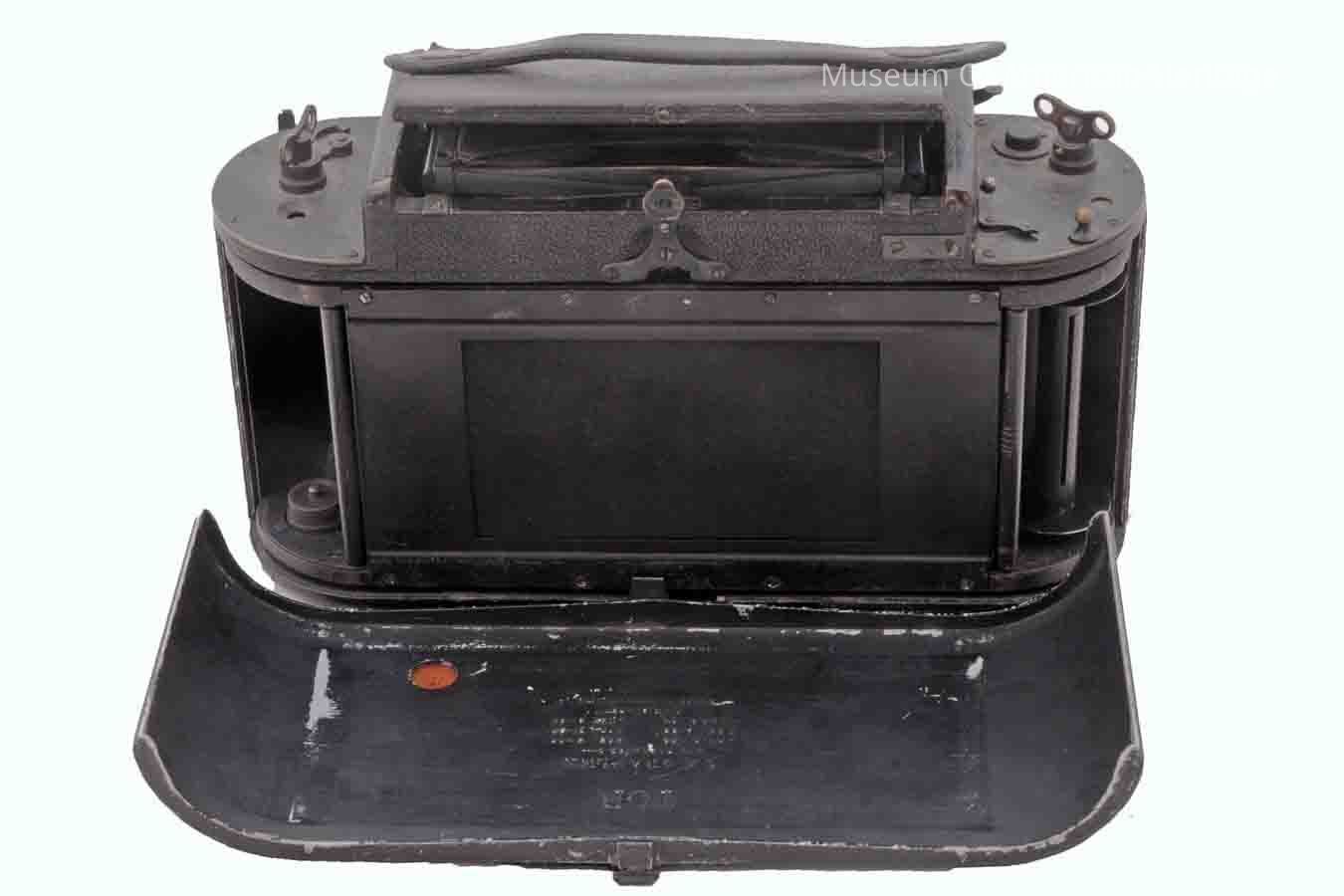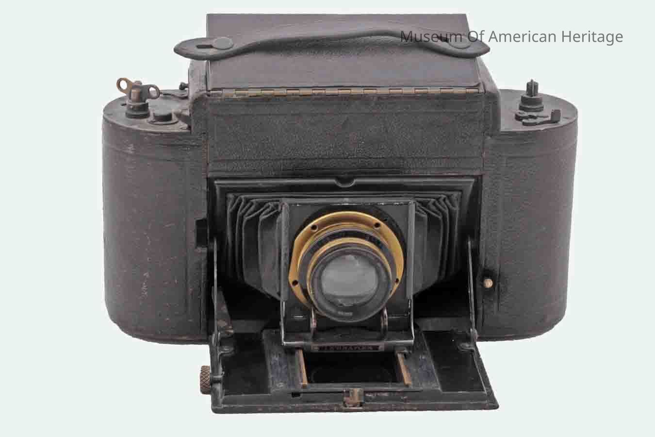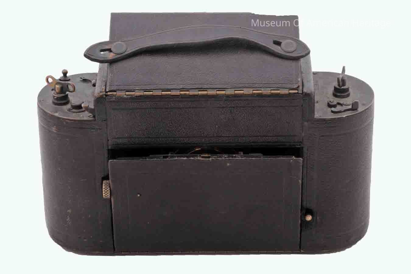 Lens made by Bausch & Lomb-Zeiss Tessar, Mirror inside, front flap, top flap, 116 roll film.