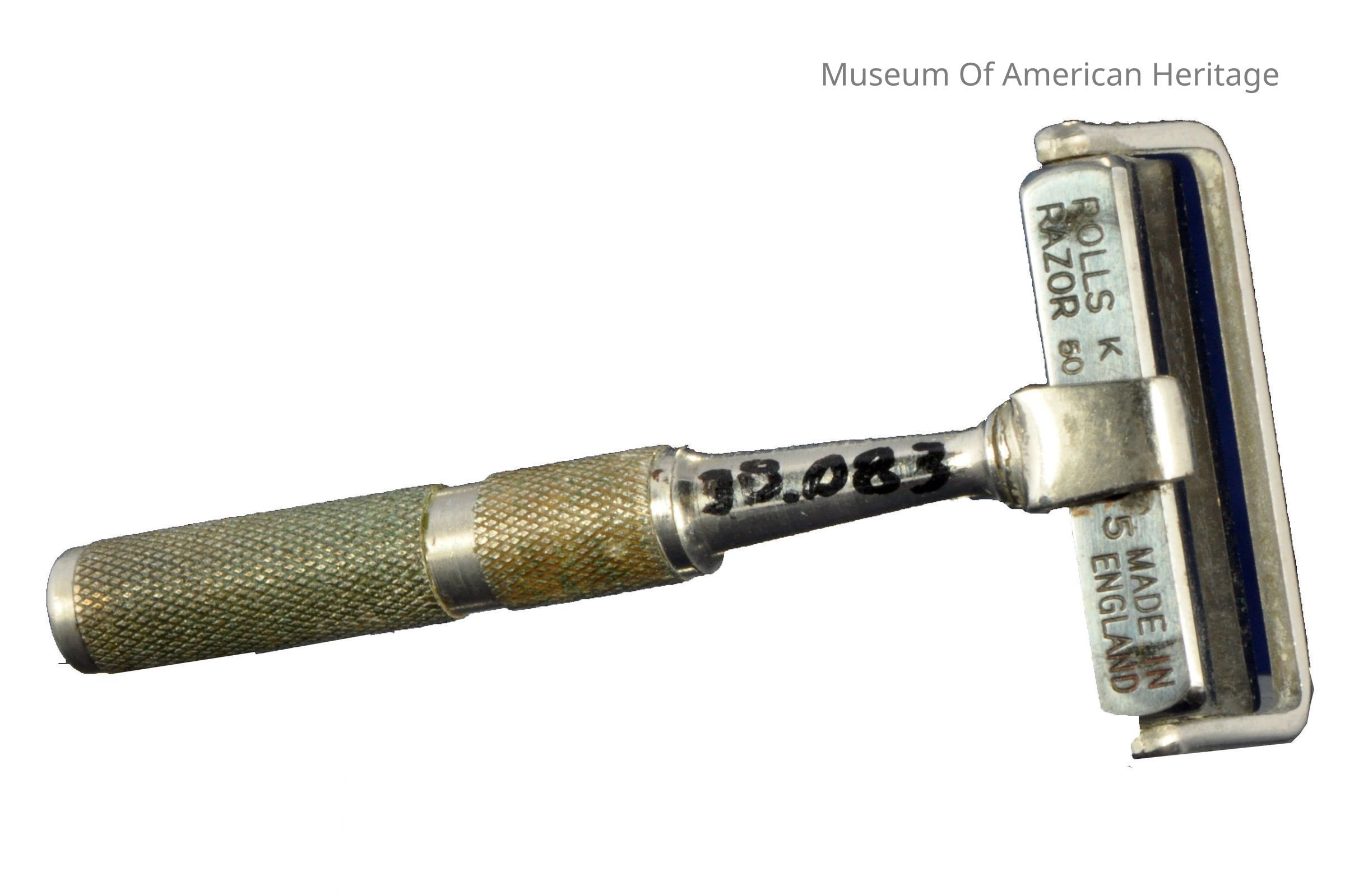 Top and bottom are 2 grade of sharpening strops , open top or bottom by pushing button on end, sharpen blade by pulling handle back and forth, blade flips to sharpen other side, blade removes from sharpen handle attaches to handle for shaving, Kneeling Maiden Figure on case.