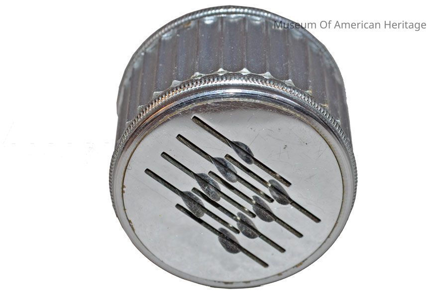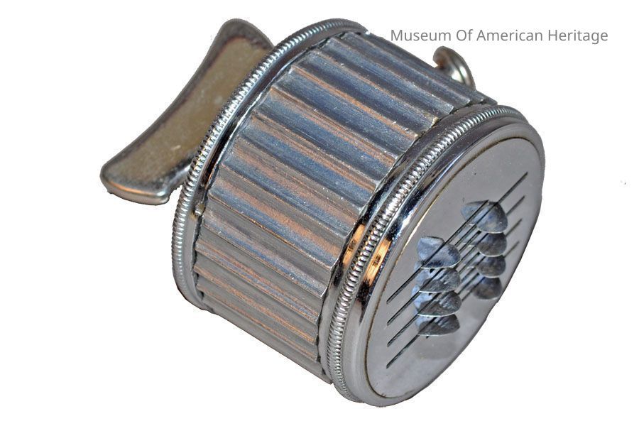 Scarificators were designed to quickly (and less painfully) produce small cuts on the skin of a patient. First developed in the early 1700s, they reached peak use during the 1800s. The 8 rounded blades in this device are wound by the top knob and released by the side button.