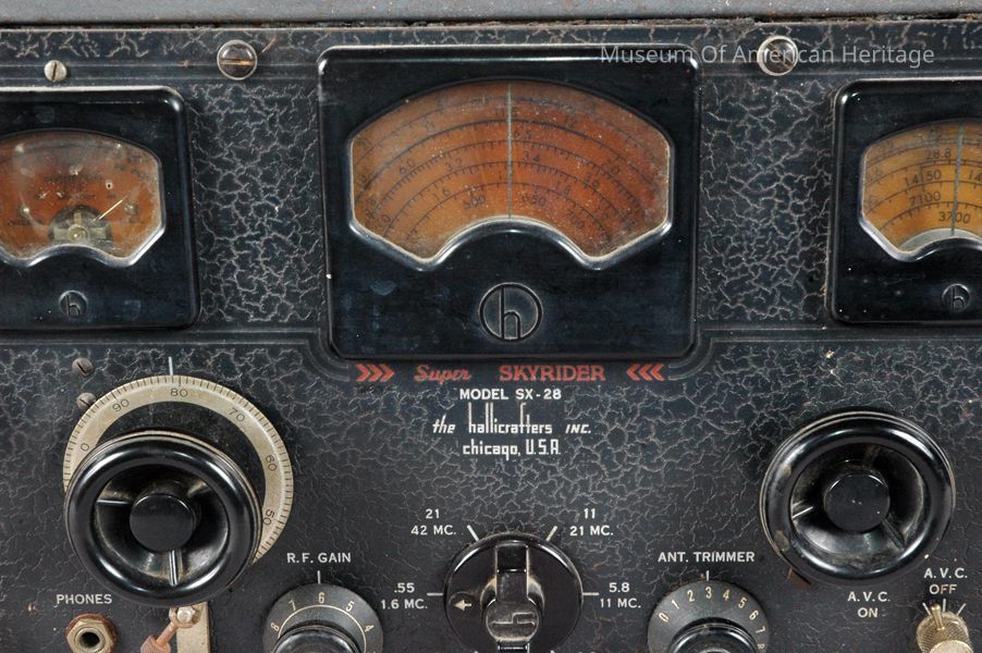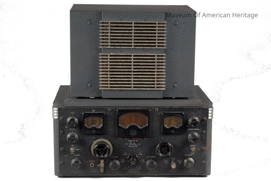 Ham radio, short wave transceiver, includes PM-23 speaker s/n PM-100-C10652 (Ref-www.radioblvd.com/sx28notes.html), speaker had a lower case h on the lower left grill until 1943 and was left off for the duration of WWII.