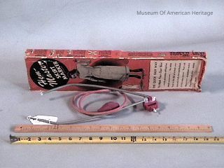 In original box, aluminum :& plastic loop, wood ruler, bulb & hose for marking with chalk dust.