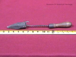 Wood handle, twisted wire handle to iron, for tinners, made of copper (soldering copper).