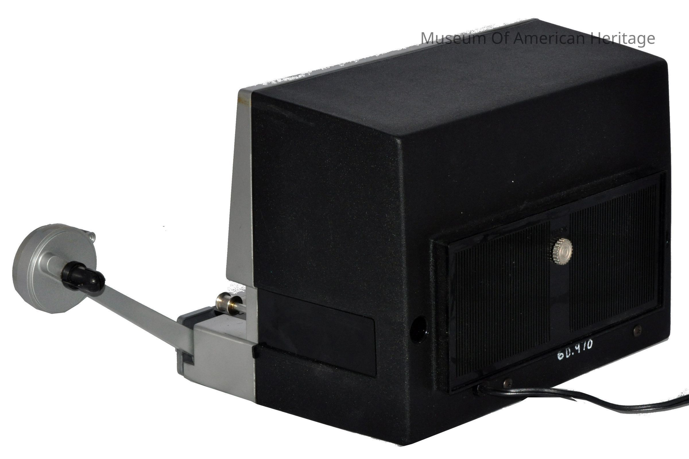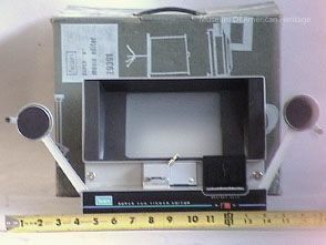 Instruction book, tape splices, magnifier to screen 4 X 5 1/2, self-threading reel.
