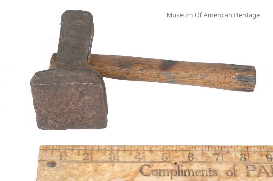 Function unknown, possibly for felt or leather, large head, short handle, made from single slug of iron by blacksmith.
