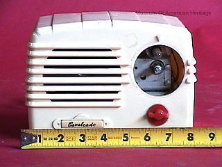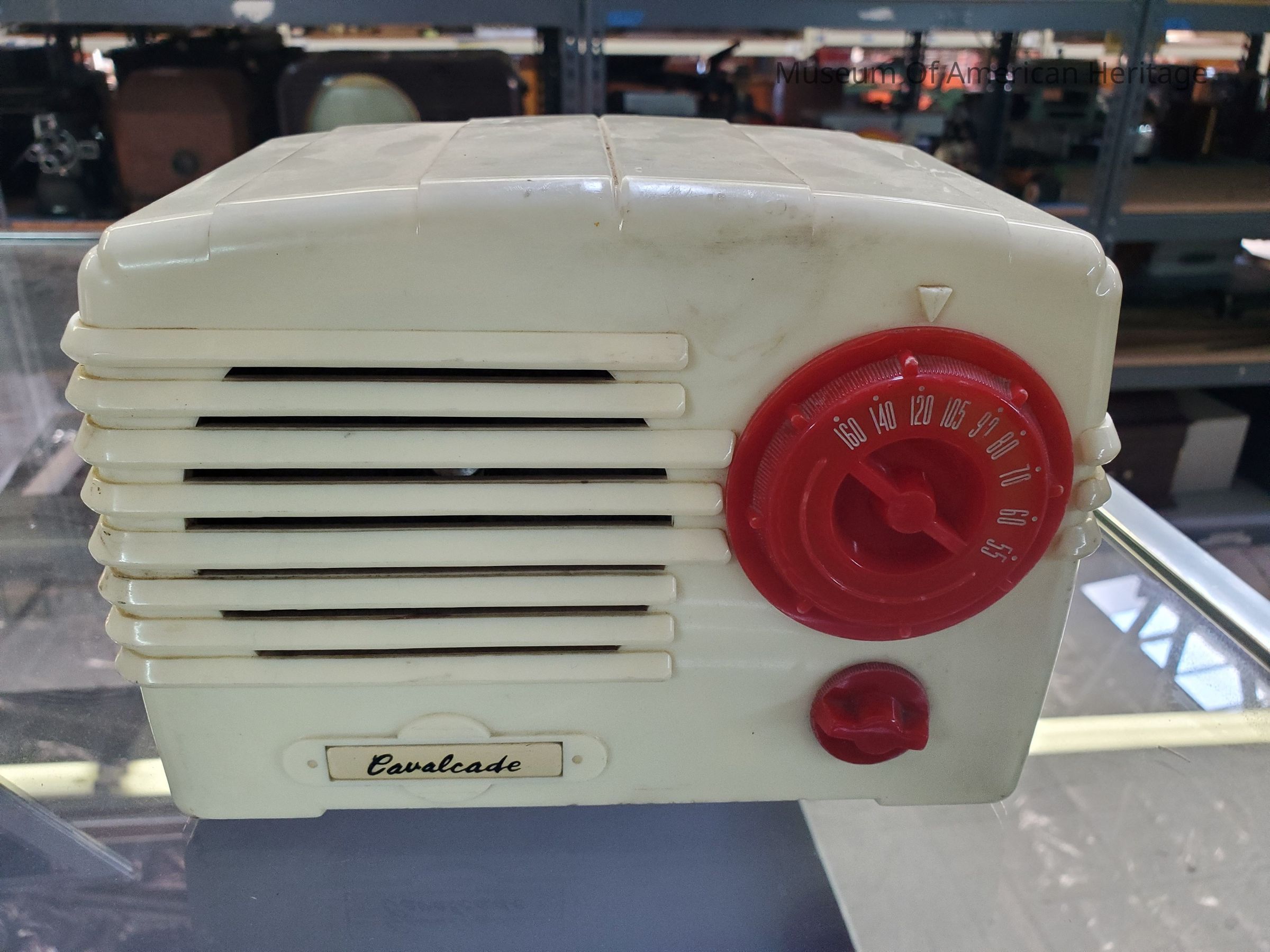Dial found and installed on radio. Probably made by Belmont Radio, Chicago, for Cavalcade