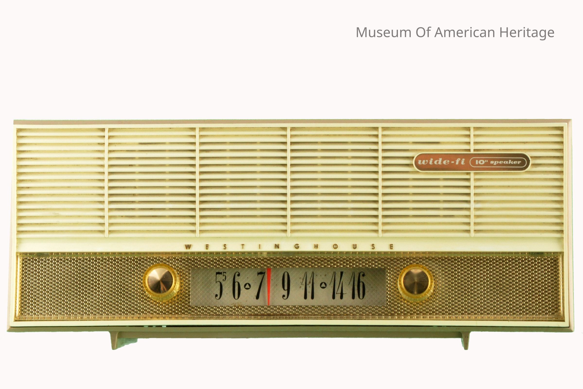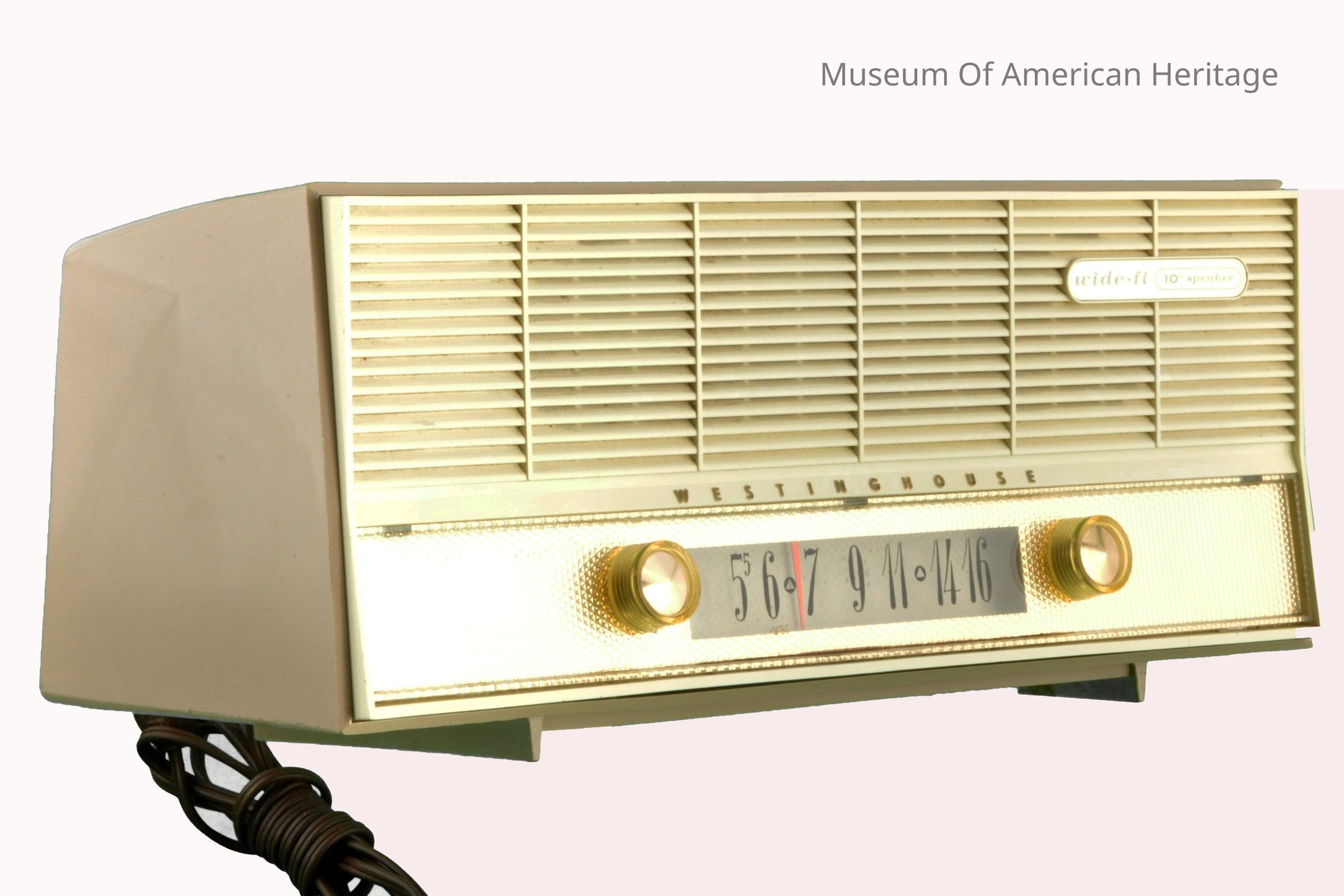 Gold selector panel, two knobs, dial 5.5-16, brown AC power cord.