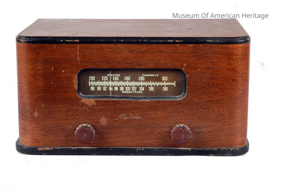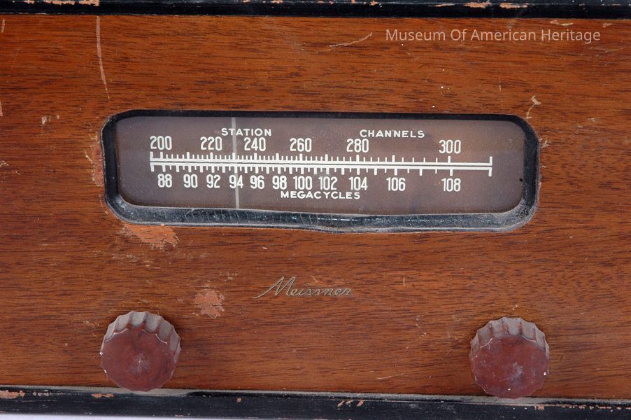Table model, AC, 2 dials, early FM tuner, requires external speaker or ear phones.