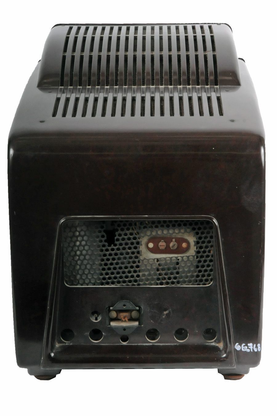 Given nickname of "locomotive" because of unique shape, 12-channel VHF tuners and use intercarrier sound, 115 volts, 19 Tubes, full-wave voltage doubler.