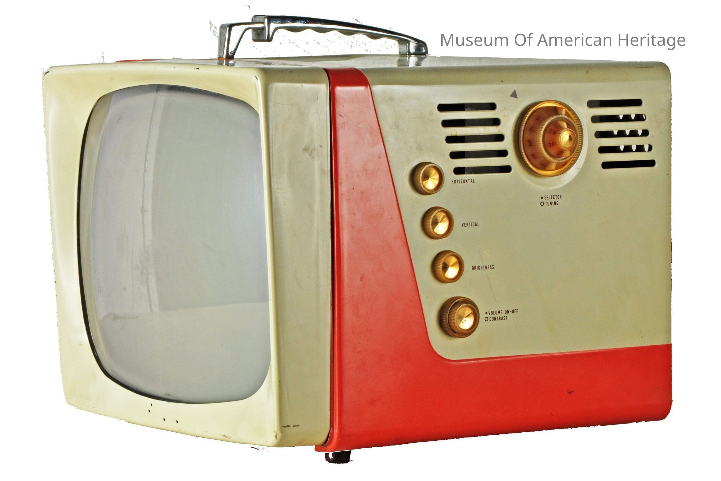 Rabbit ears antenna, horiz/vert/brit/contr/chann. control on side, metal case.