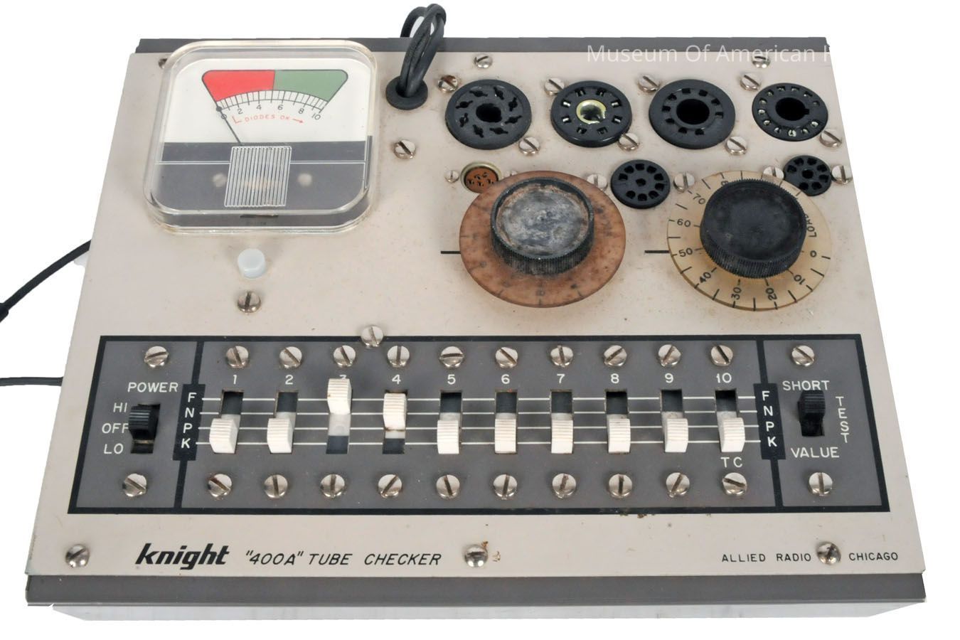 possible date made: ca 1960s where made: Chicago, IL model name: Knight 400A Tube Checker