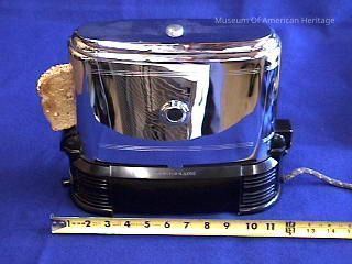 The Toast-O-Lator uses a series of rotating gears with angled teeth to propel the toast or muffins from the input side past the heating elements to the output side. There are clear viewing ports in either side of the toaster so that the toast can be viewed as it trundles past. The patents were issued in 1938, 1938, 1939, and 1940 This is arguably the most collectable toaster type in the world. The most available Model J unit sells for approximately $500 today. An earlier Model C version with full glass window sides sold for $11,000 recently. There are YouTube videos and a BBC short on it, as well as fan clothing items displaying the Toast-O-Lator name and picture on them.
