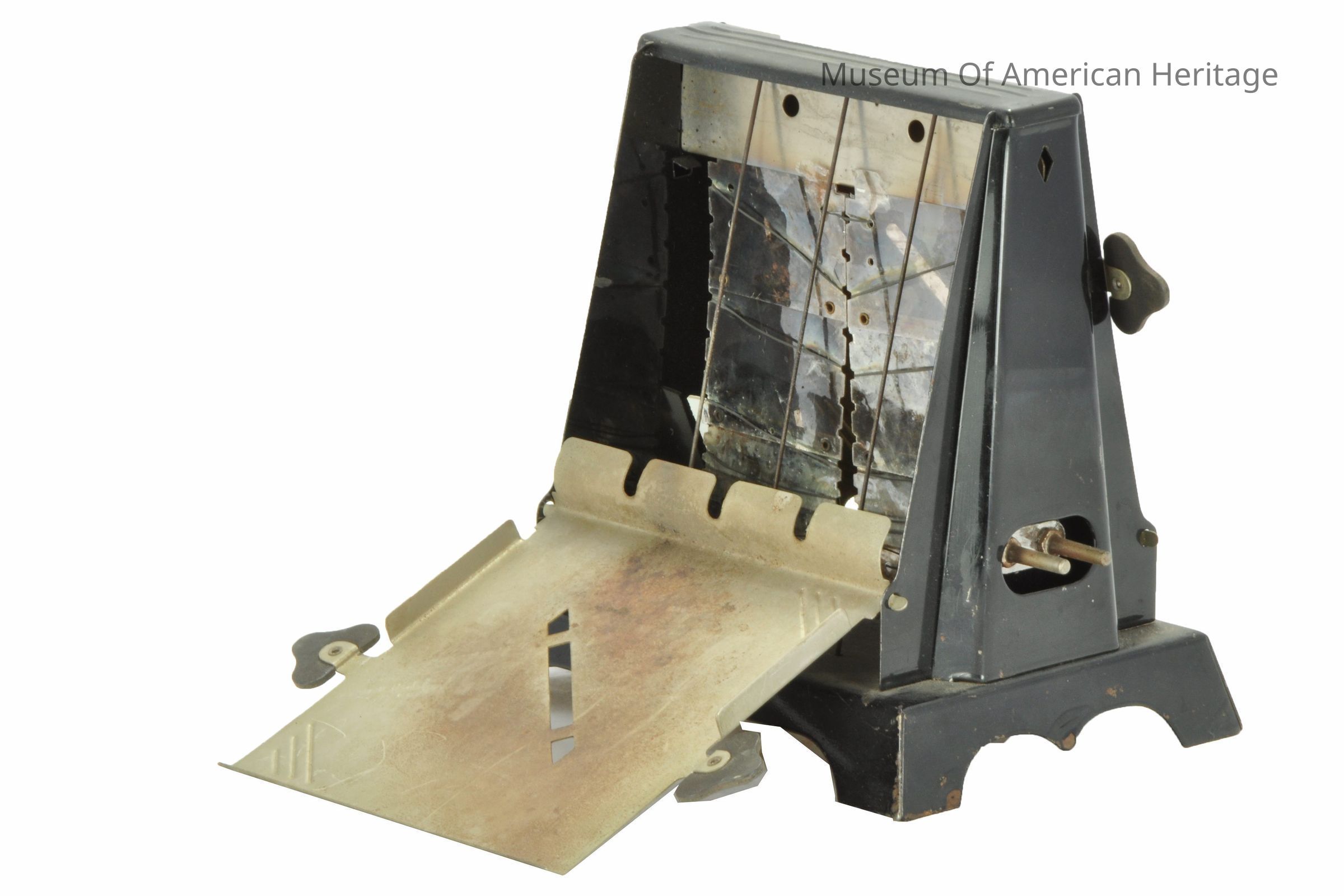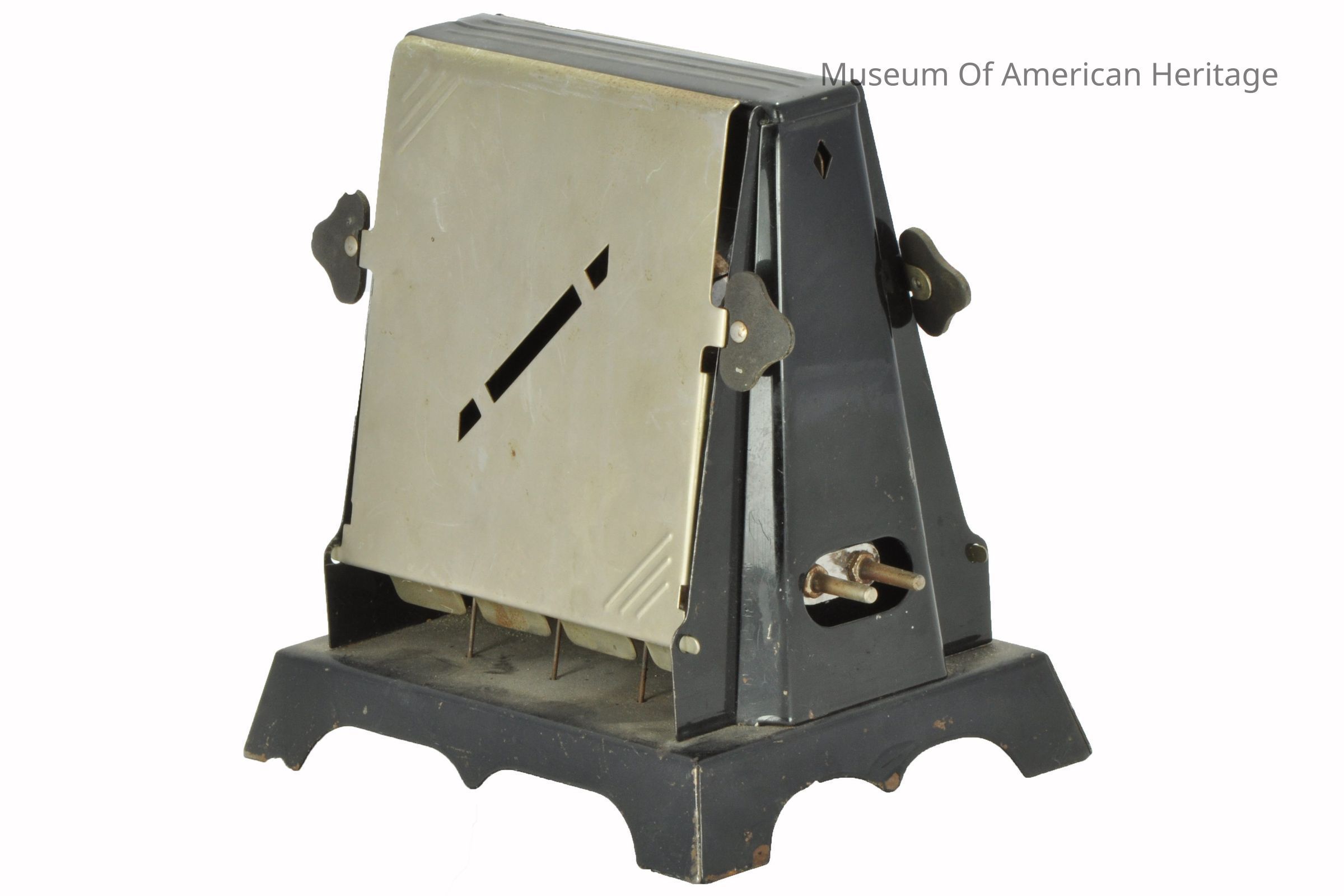 Electric with cord, two-slice, doors flip bread, fiber board handles.