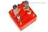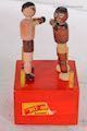 This push puppet toy shows two combatants “box” when the button on the bottom of the toy is pressed. Other push puppet toys featured dogs, cats, and cartoon celebrities that all collapsed when the button on the bottom was pressed. Releasing the button allowed the character to pop back up to its original shape.