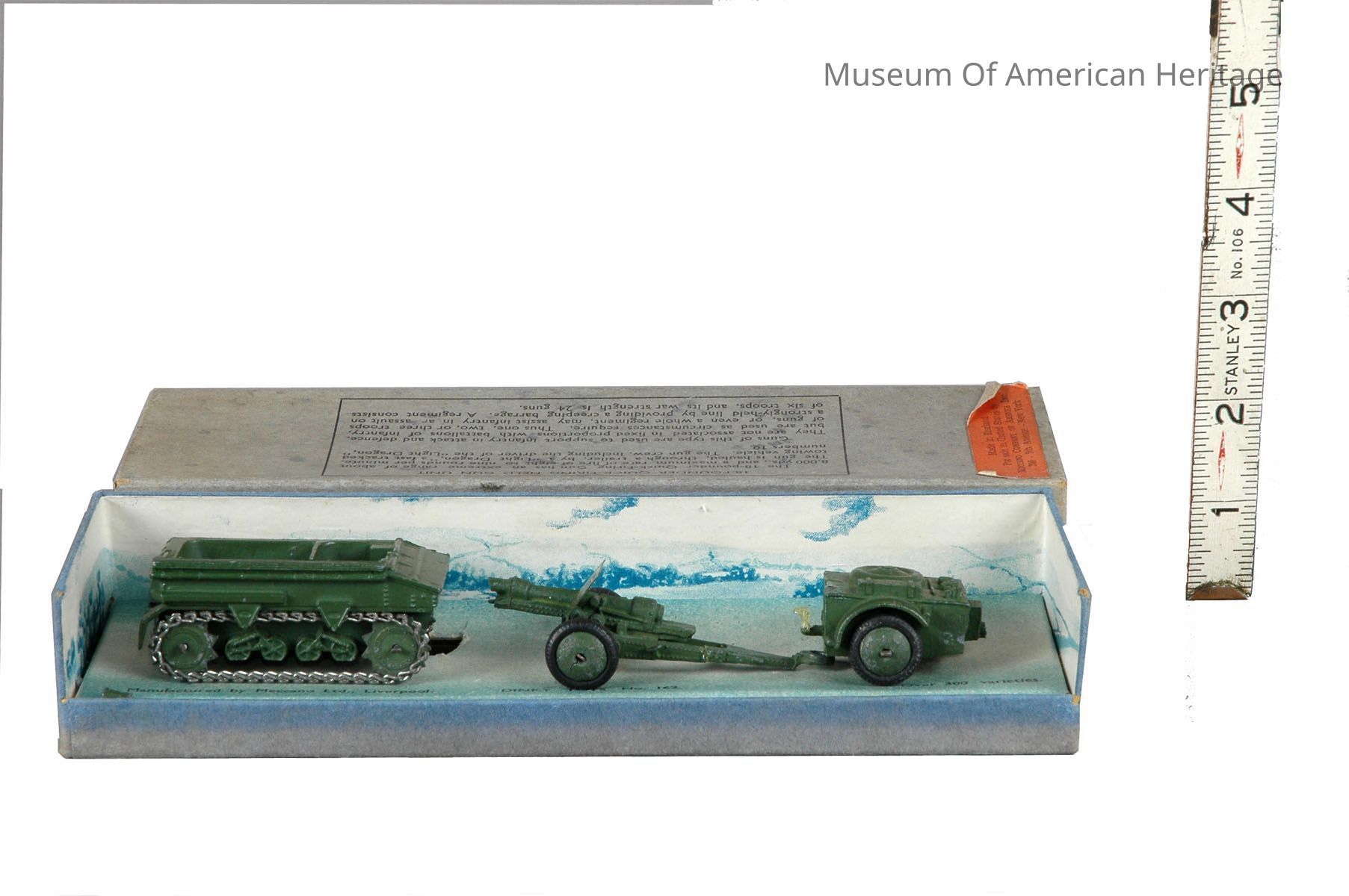 Original box, track vehicle, trailer, 18 Pounder gun.