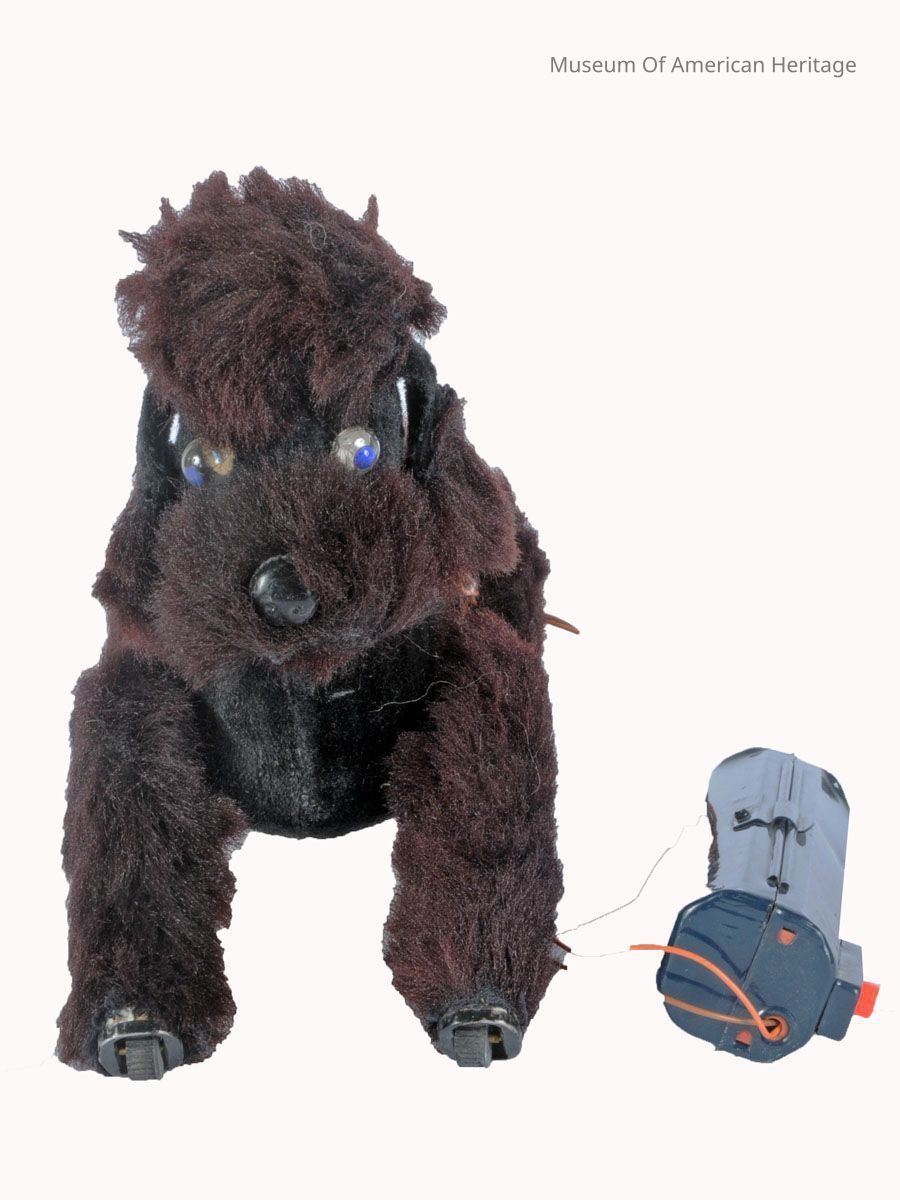 This battery-operated dog will walk, sit and wag its tail, all by using the remote control. Founded in the 1950s, Yonezawa Toys Co. Ltd. specialized as one of the most “prodigious post-war toy manufacturers.” They focused on battery-operated and mechanical toys from the 1950s through 1998.