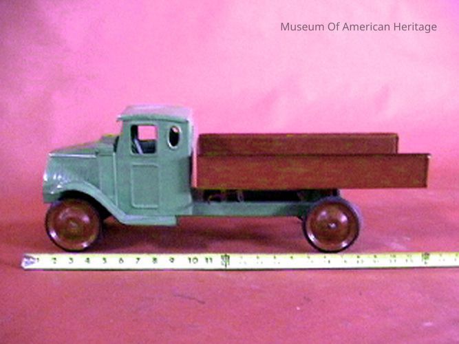 Beginning 1919, Murry Mfg. Co. began manufacturing full-size trucks and cars. In 1923, Murry came up with the idea to use old scraps from cars and turn them into steel toys. They were known for making bicycles, airplanes, coaster wagons, lawnmowers, tractors, and of course, toy dump trucks. Many of these toys are marketed as “Steelcraft Wheel Goods.” Operating from 1919 to 1957, Murry’s toy trucks came with “movable steering wheel with a responsive axle,” along with “a fully operational lever to lift the bed of the truck.” This truck is a collectible with the class Mack body frame and sells for $500 - $750.