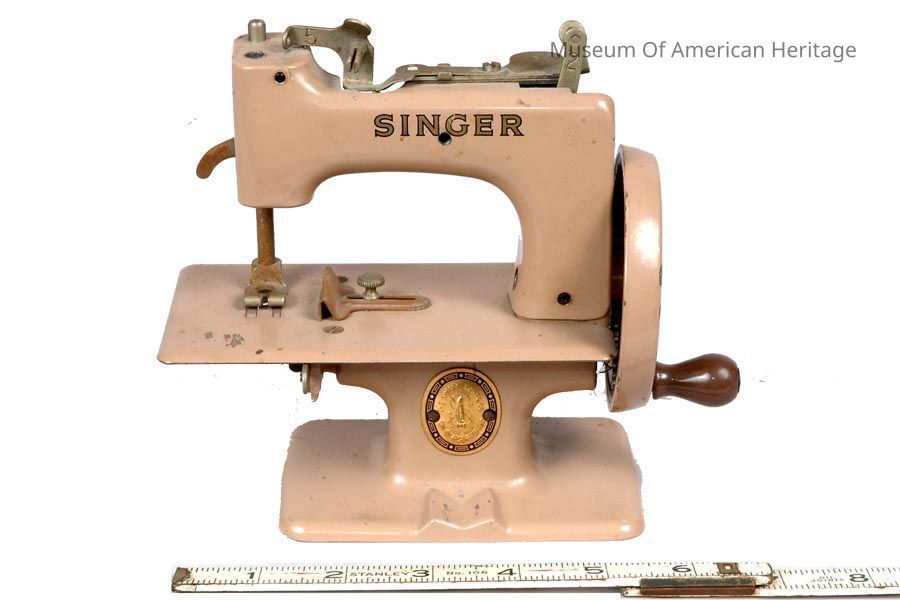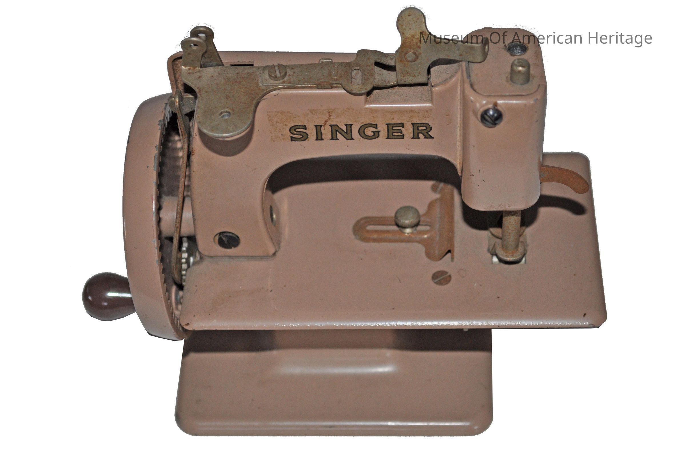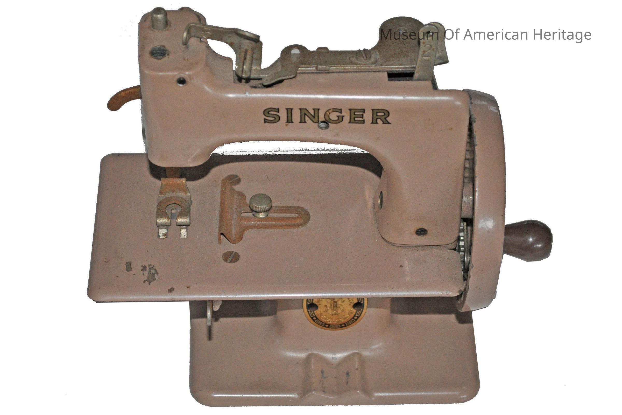 Hand wheel operated, cast metal, good condition. This Sew Handy model 20 was the most popular (and copied) toy sewing machine in history. It was built from 1920 through the 1970s. It came with a C clamp to fasten it to the edge of a table.