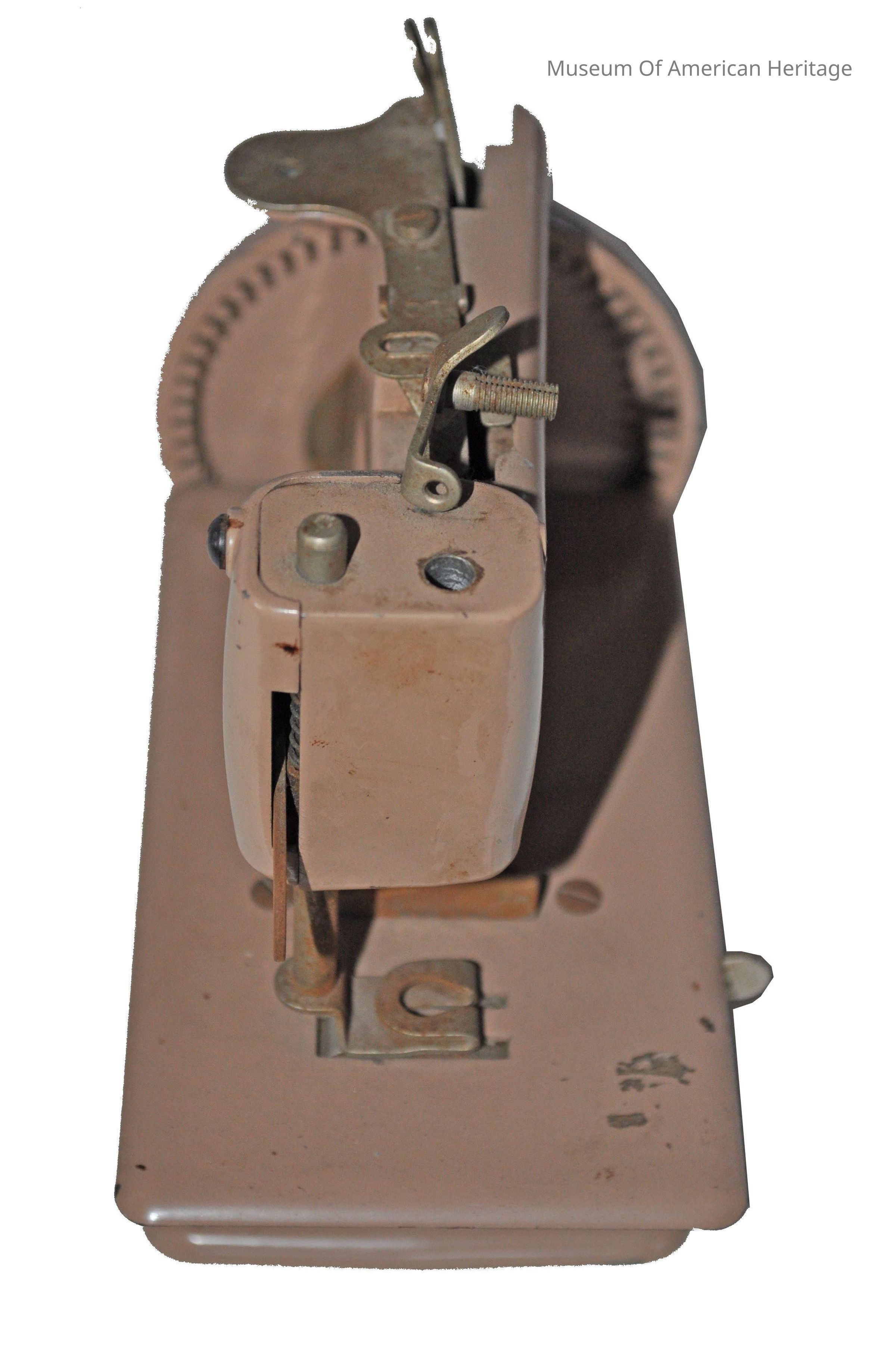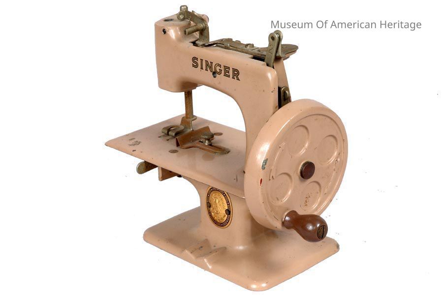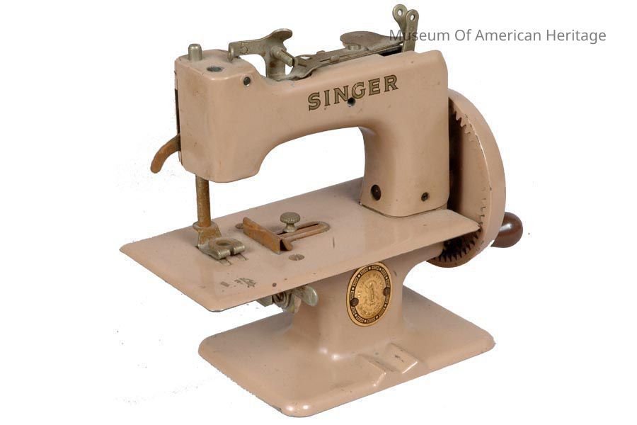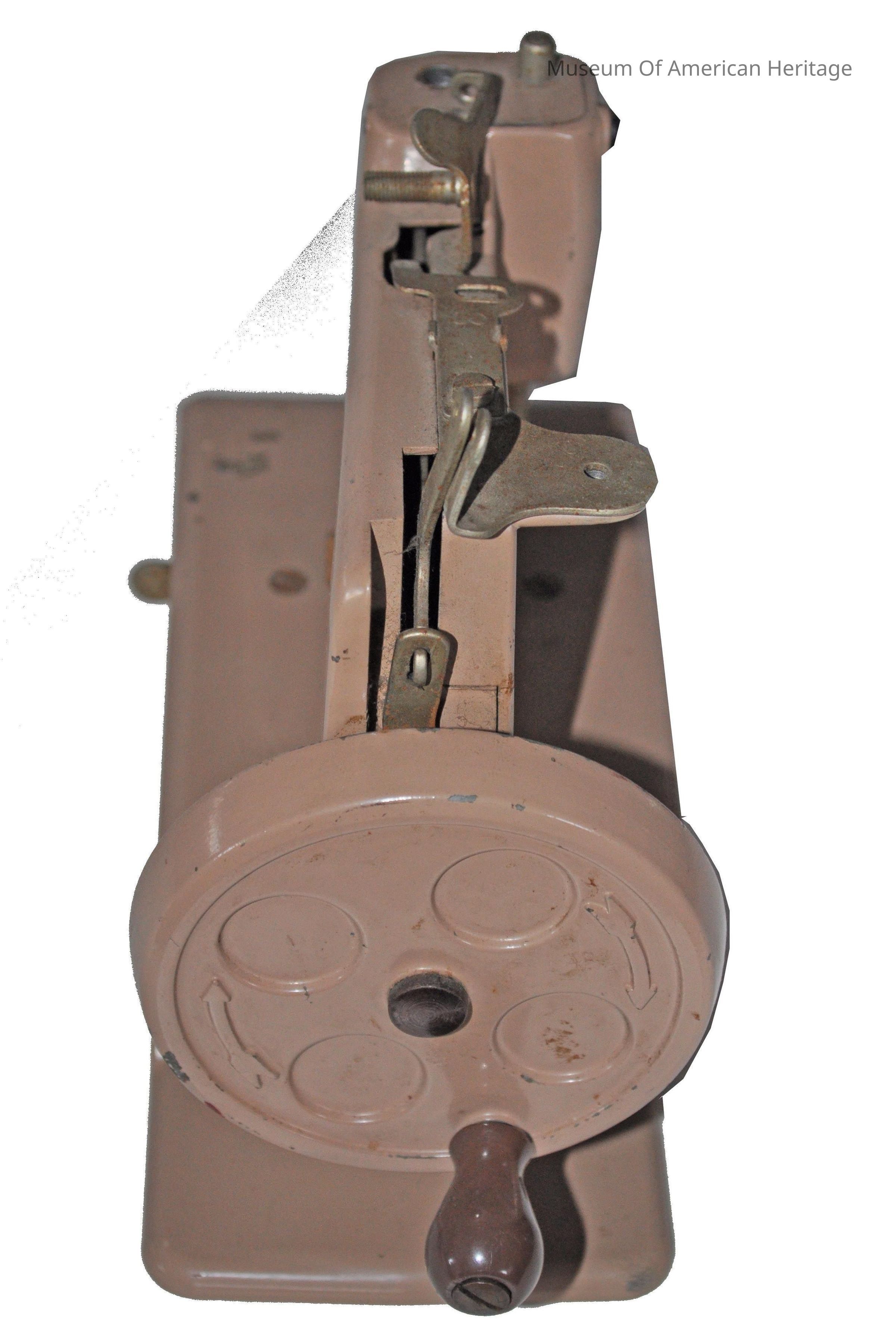 Hand wheel operated, cast metal, good condition. This Sew Handy model 20 was the most popular (and copied) toy sewing machine in history. It was built from 1920 through the 1970s. It came with a C clamp to fasten it to the edge of a table.