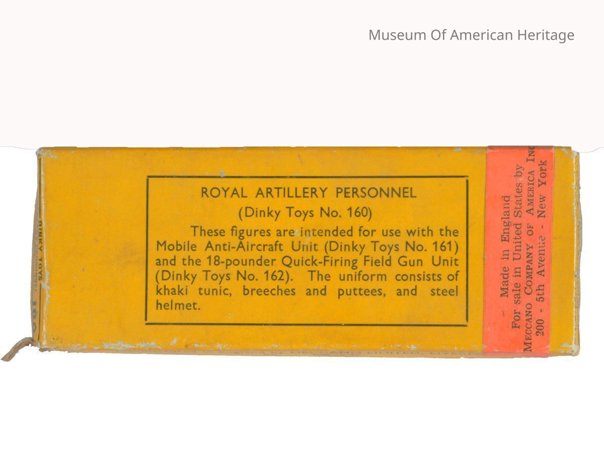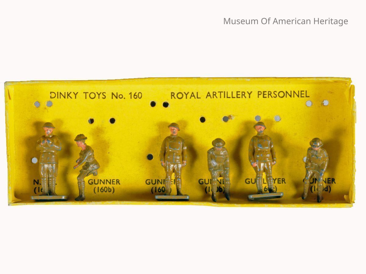 where made: Liverpool, model name: Royal Artillery Personnel model number: Dinky Toys No. 160