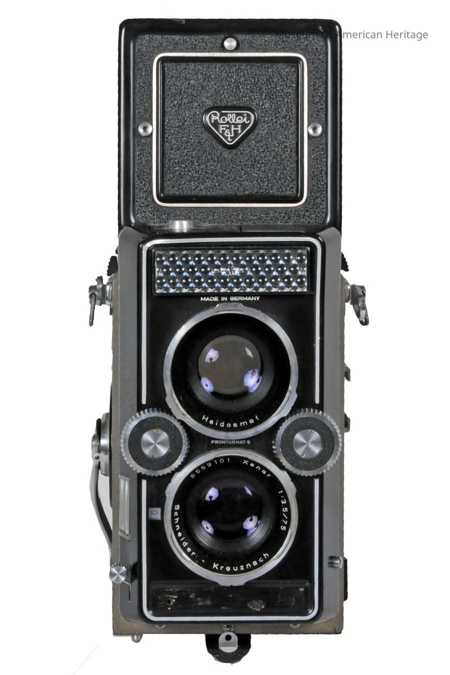 Prontormat-S shutter, Heidomat viewing lens, TLR Xenar 75mm f/3.5 taking lens.