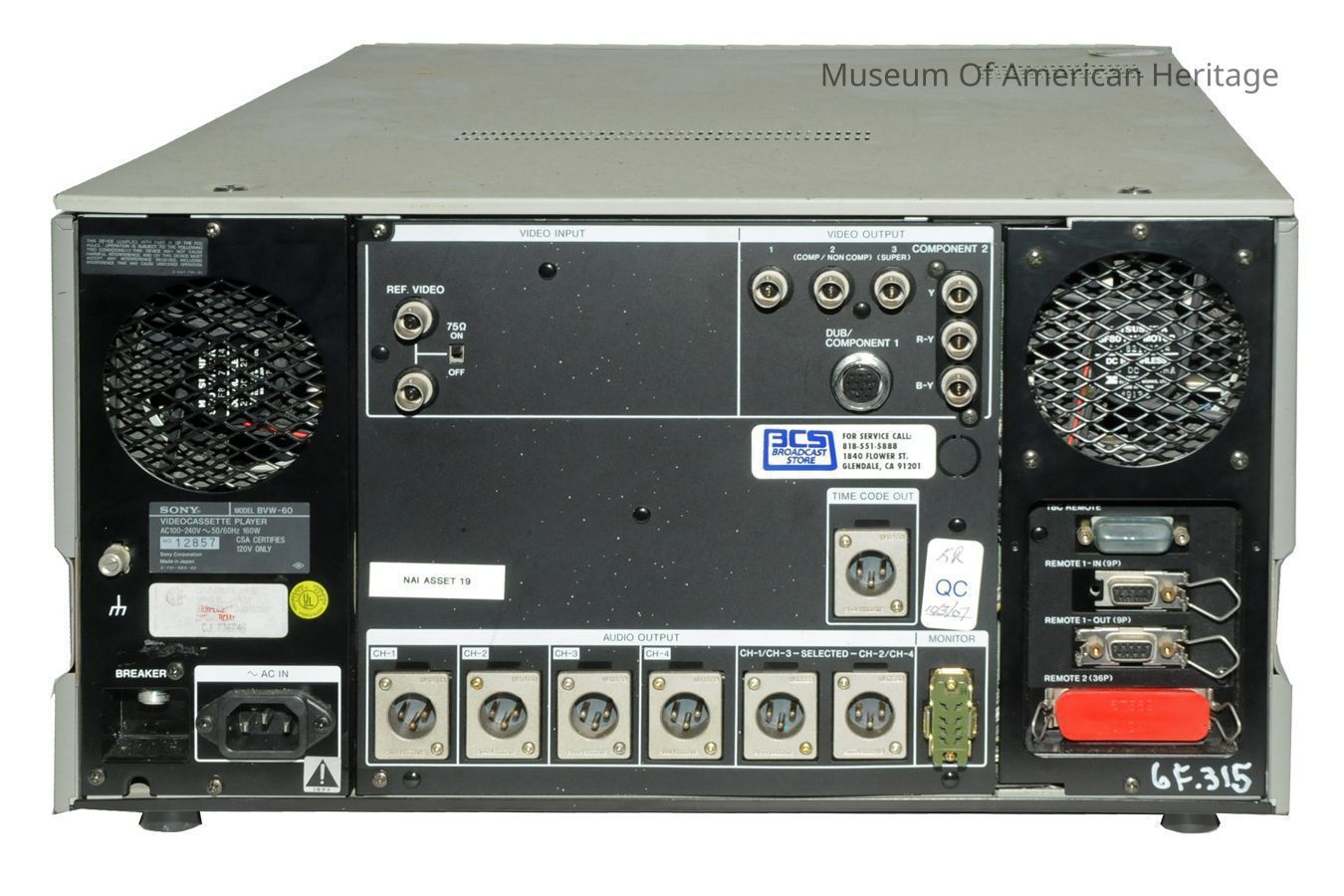 possible date made: 1980s where made: Japan model name: Betacam SP model number: BVW-60 serial number: 12857