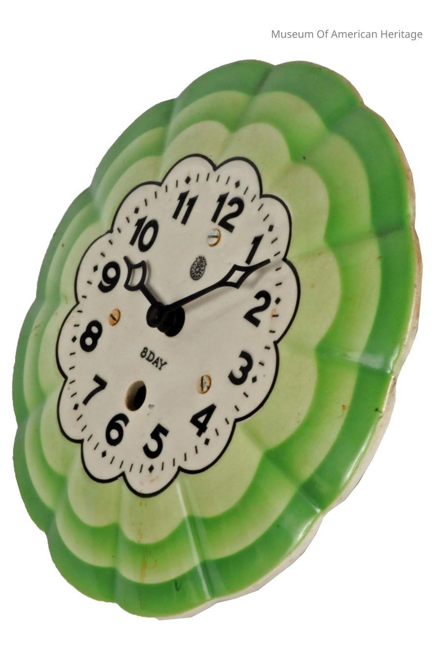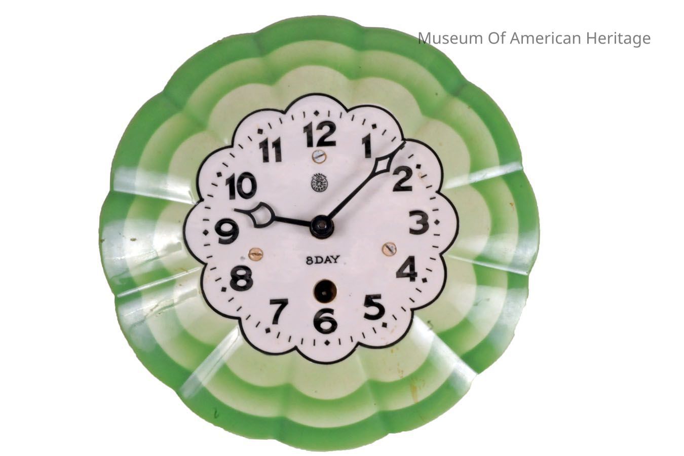 8 Day wind up clock. Green sunburst / flower shape.