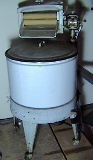 Electric, agitator/wringer, 3-blade agitator, vertical cylindrical tub.