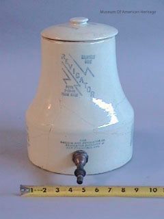 revigorates or restore natural vigor to drinking water , Radium treatment, made of pottery, copper spigot, with lid.