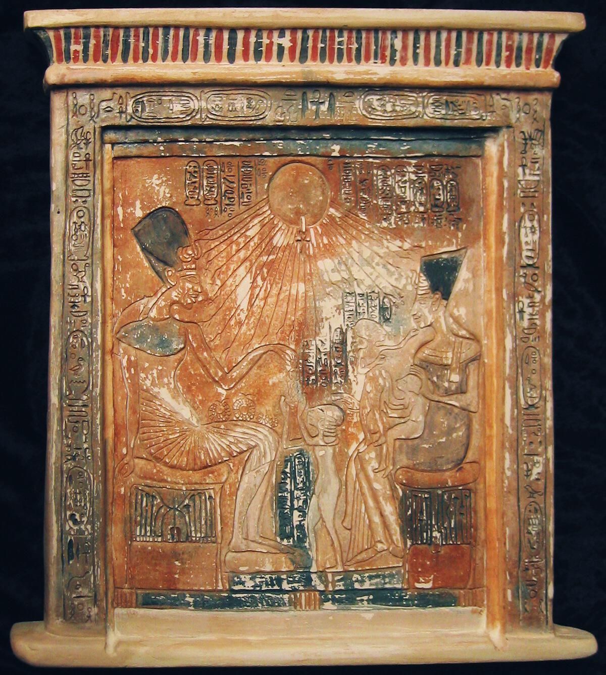 The tablet represents the attempted change from polytheism to monotheism by Akhenaten, with the sole worship of the sun god Aten. Depictions of the family's religious piety would be seen as politically advantageous in the sense of setting a model for the citizens of the empire to follow.Made/Created