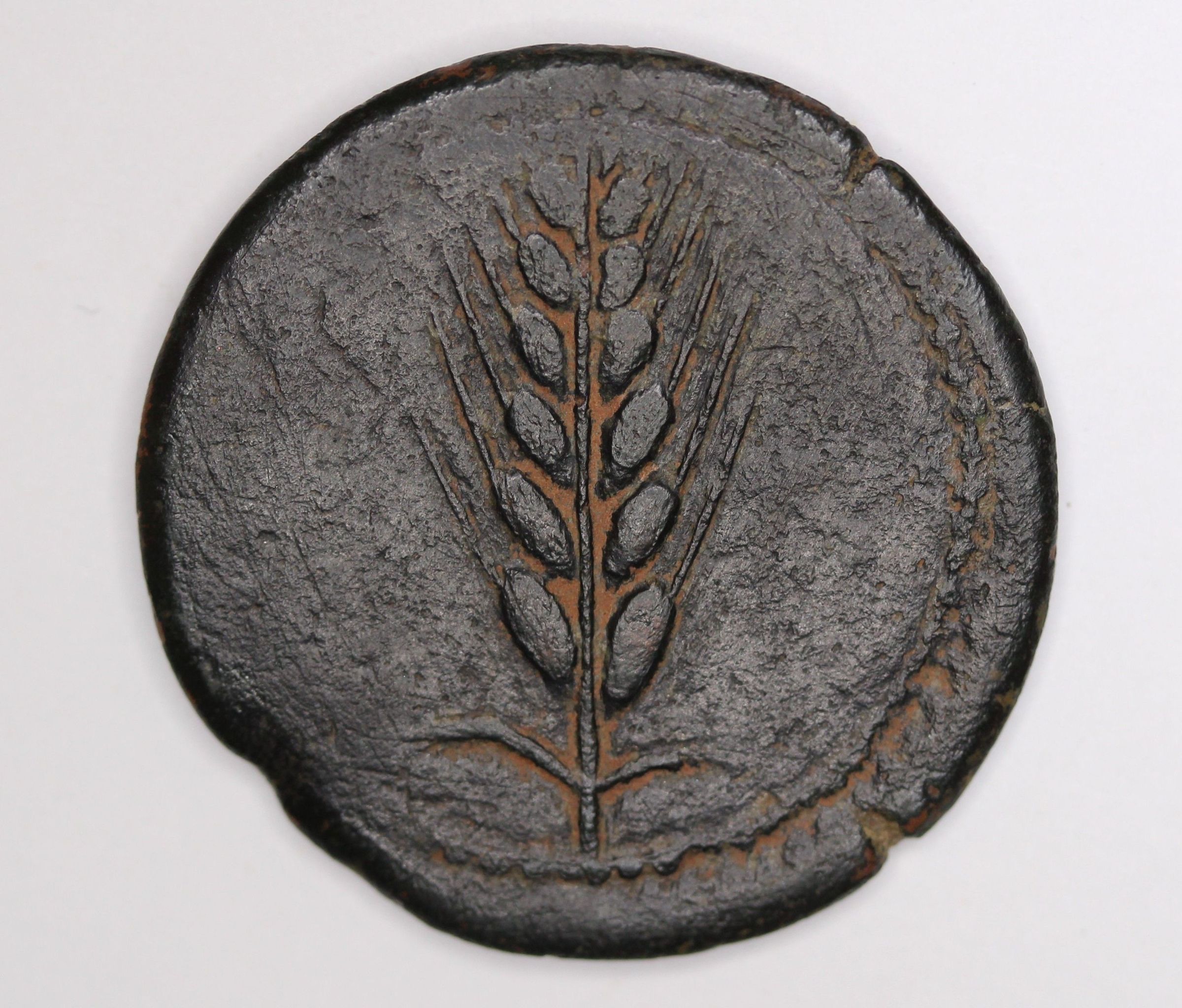 Ear of wheat surrounded by a border of dots.Reverse