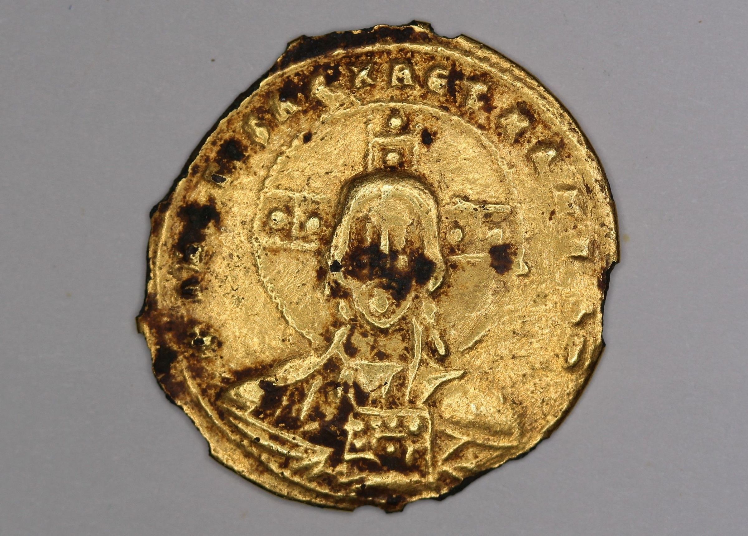 The obverse portrays the Byzantine iconography of Christ the Teacher (Pandokrator). This imagery is meant to portray the idea that Jesus Christ taught true philosophy. Therefore, he could be counted among the ancient sages such as Socrates and Plato. In this imagery, Jesus Christ is depicted wearing a traditional philosopher's pallium because he taught his believers a greater form of wisdom compared to what is available on earth. Christ is seated and holding a codex containing the wisdoms and teachings of God. This imagery of Christ directly correlates to the reign of Basil II. By portraying this imagery of Christ as the ultimate teacher and philosopher of the Christian people, Basil II is stating that he is similar to Christ, because he is also present to teach the people of his empire and show them a form of greater Wisdom. During a reign filled with multiple revolts and two civil wars, Basil II is using this imagery to portray his own Christ-like qualities. Thus, Basil II is thus portraying himself as a teacher who will show his people a greater form of wisdom, which will guide them through the tumultuous years.Collection