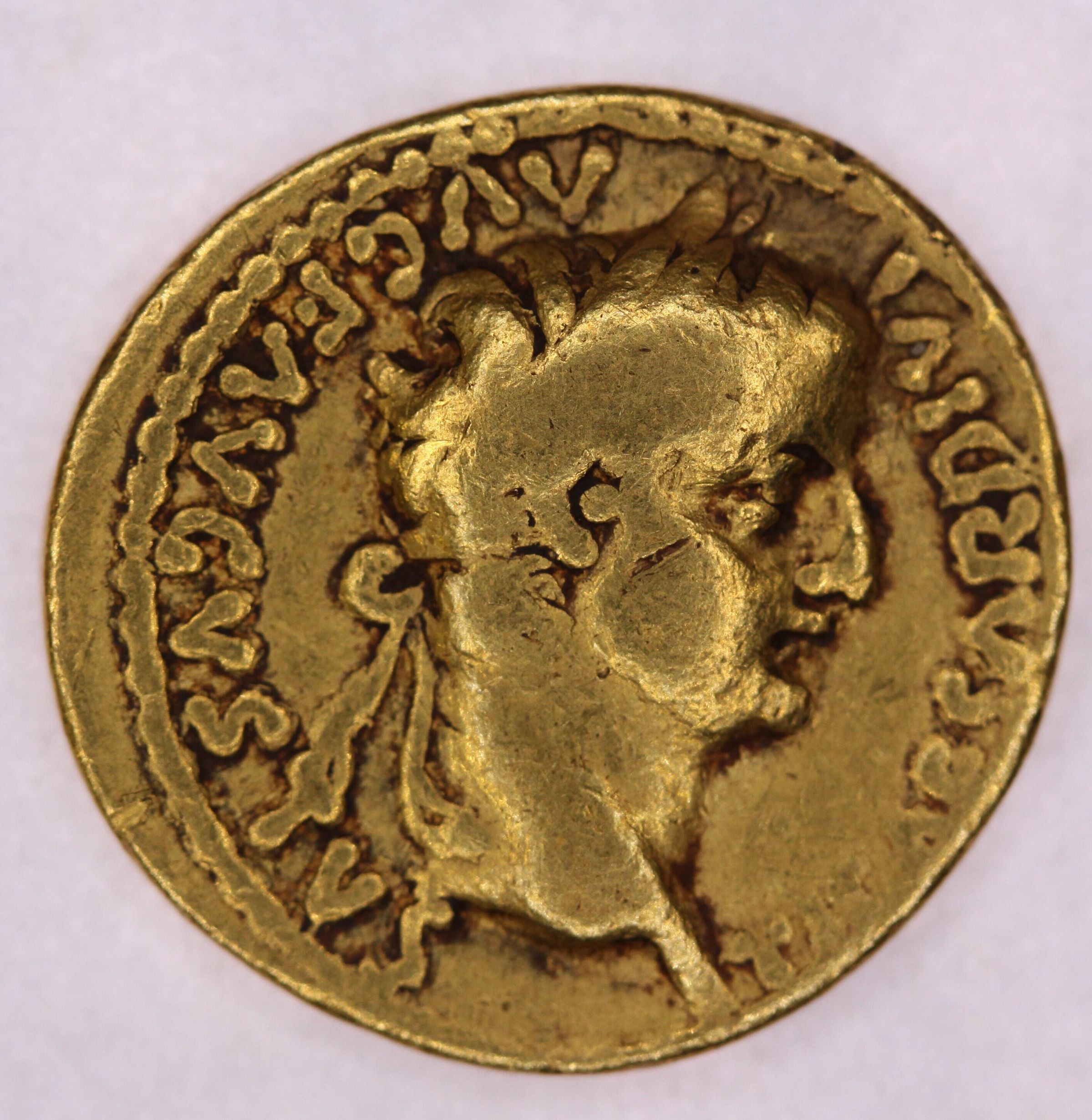 Female figure (Livia?), draped, right, seated, right on chair, holding long sceptre in right hand and branch in left. Border of dots.