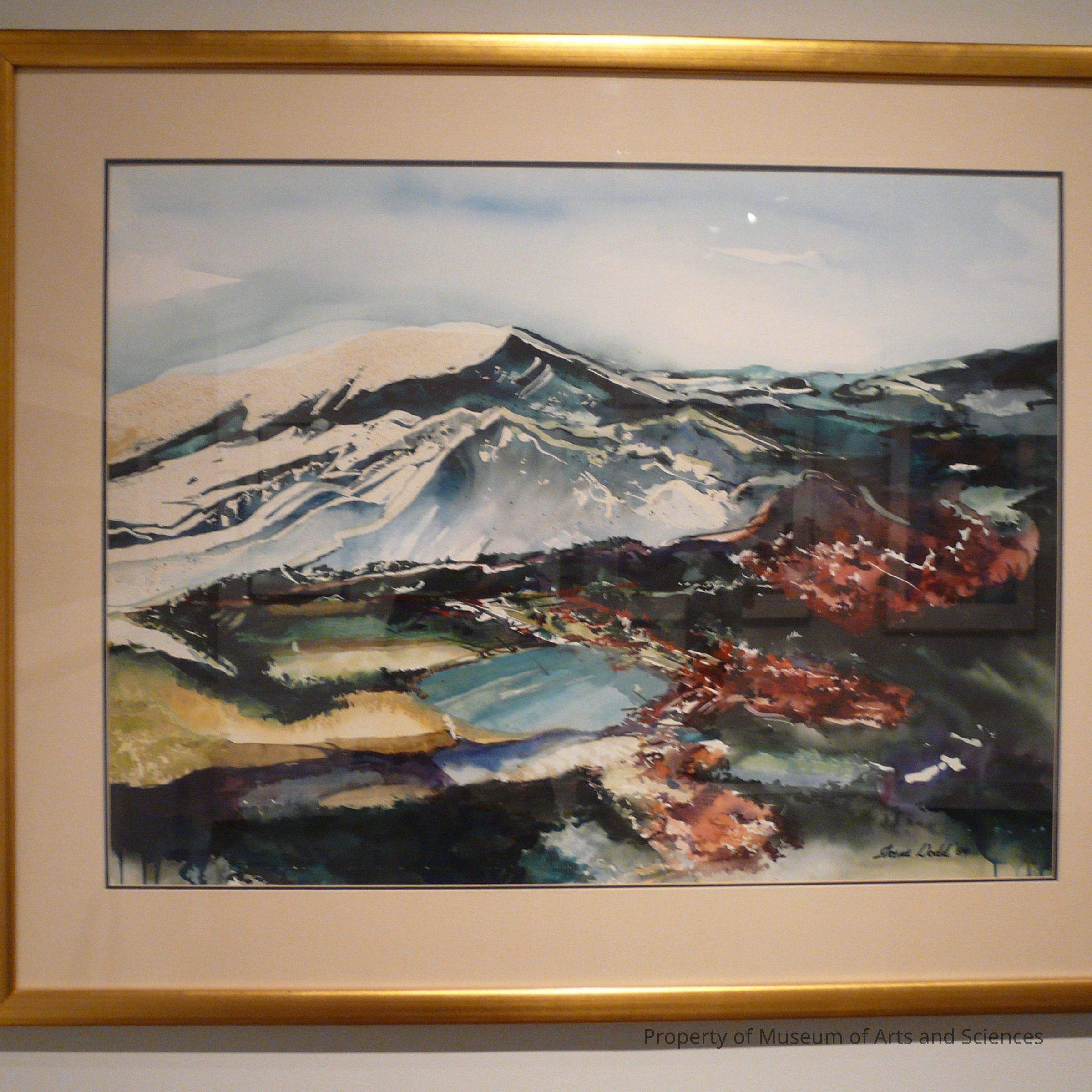 The transparent watercolors of God, Give Me Mountains displays a unique luminosity and virtuosity. The white of the watercolor paper is integral to the design and enables the artist to capture the bold light and dark contrasts that are signatures of her work and technique.Artwork Details