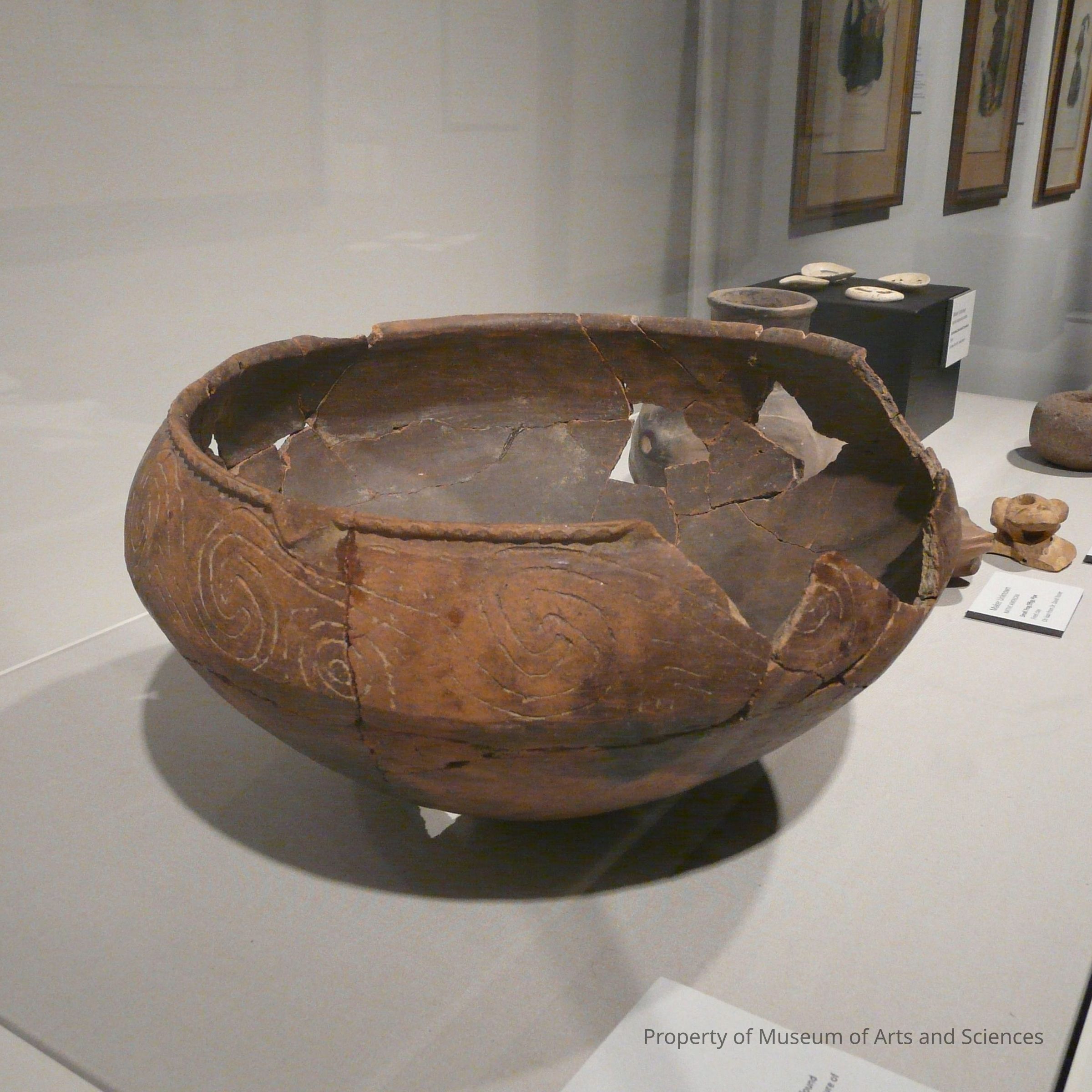 Large bowl with stamped and incised decroation around the rim. This type of pottery incorpartaed decorative elments of both the ancient Southeastern complicated stamping tradition and later traits such as incised designs on the shoulders of 'cazuela' bowCollection