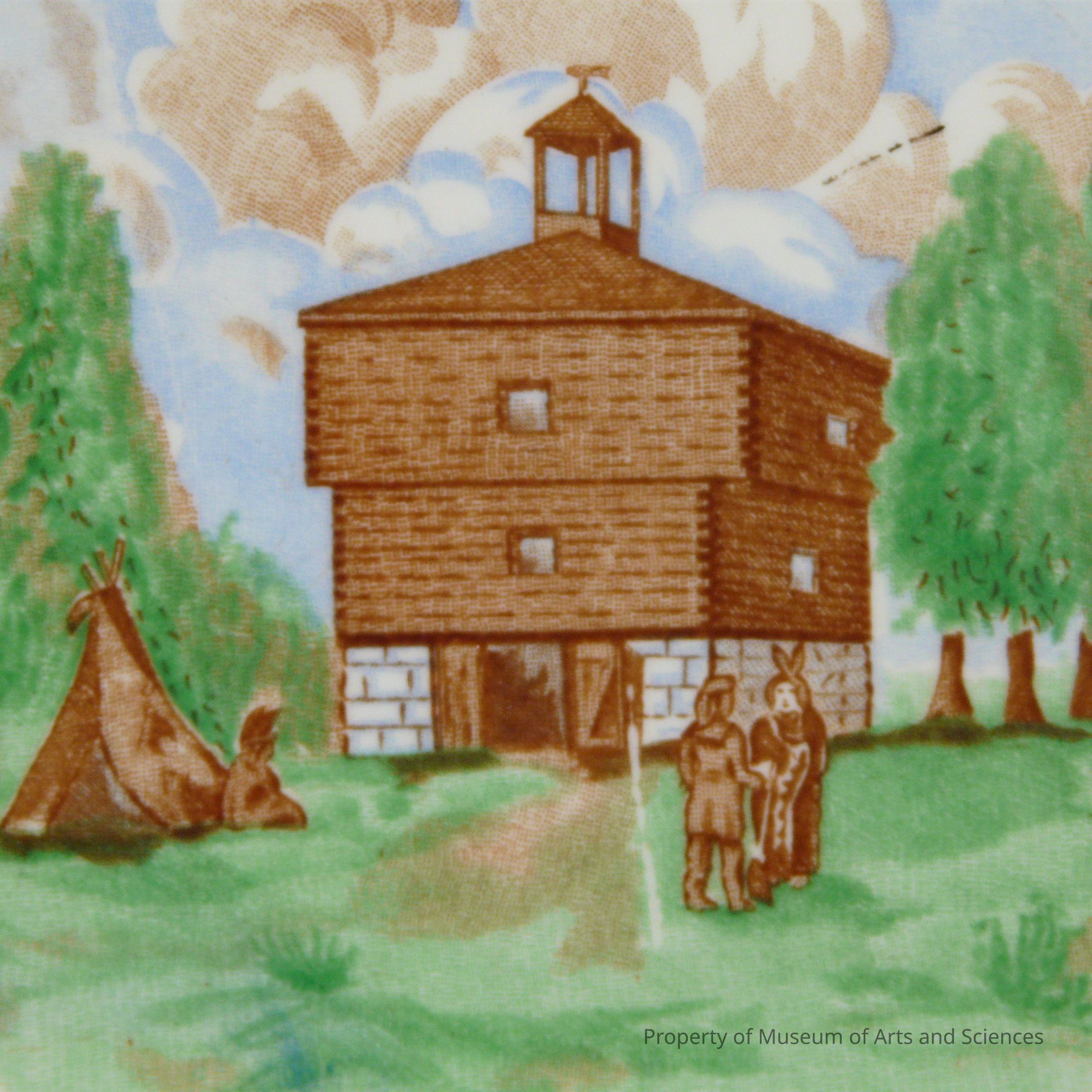 Plate Picture of Ft. Hawkins in center outlined in orange; Silhouette of Benjamin at top Cataloged by L.L. 5/13/60
