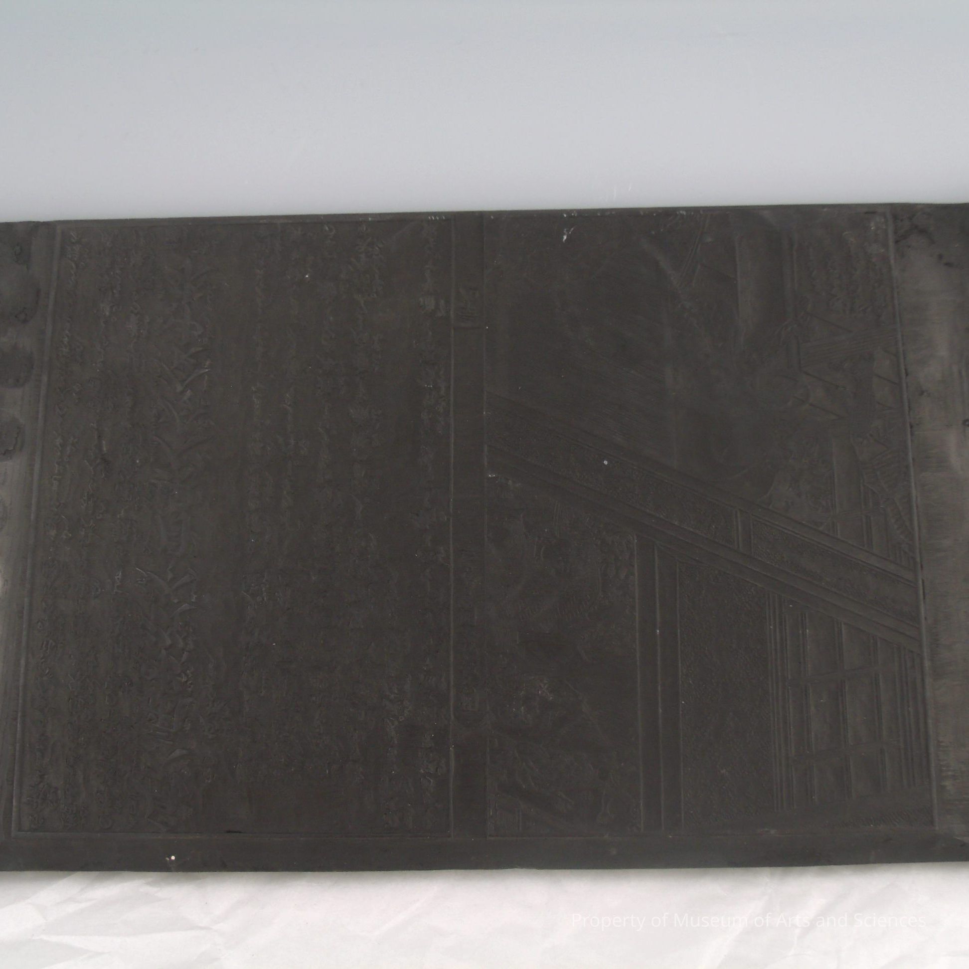 Woodcut Printing Blocks a) figure of man carved in relief b) characters Cataloged by L.L. 4/22/60